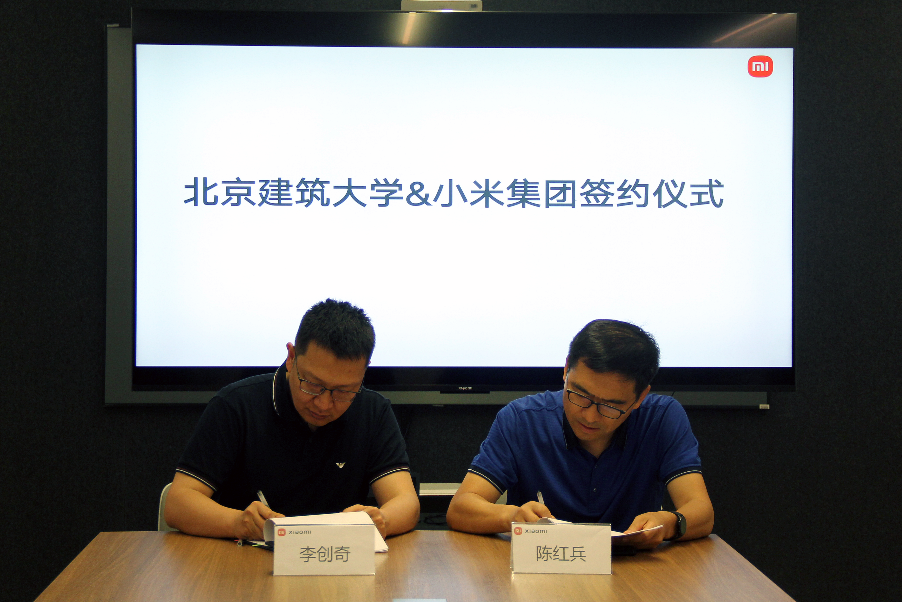 6月19日下午,小米集团与亚色网 在小米科技园举行合作框架协议签约仪式。小米集团(以下简称“小米”)可穿戴创新业务负责人李创奇和亚色网 (以下简称“北建大”)副校长陈红兵出席并签署合作框架协议,北建大聘请首批小米机器人专家代表为学生成长导师。小米集团产教融合共同体执行秘书长雍德钰、机器人事业部产品总监贾世坤等,我校亚色网 党委书记李大伟、亚色网 党委副书记兼副院长高蕾、亚色网 党委副书记李文超、亚色网 副院长王传涛、亚色网 副院长姚德臣及相关老师出席了签约活动。