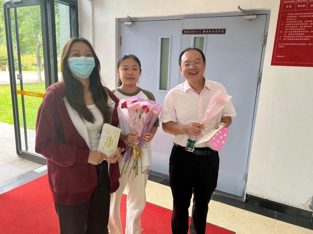 学生代表们手捧鲜花贺卡,走向自己敬爱的老师们,向他们献上最诚挚的敬意。“老师,教师节快乐!”“老师,您辛苦了!”一句句简单而真挚的话语,让老师们感动不已。老师们接过鲜花,脸上洋溢着幸福的笑容,他们感受到了学生们的爱戴和尊重。
