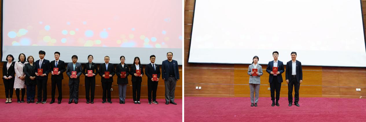 会上,领导嘉宾为“优良学风班”、“优秀团支部”、“优良学风宿舍”“建大青春榜样”代表颁发证书。