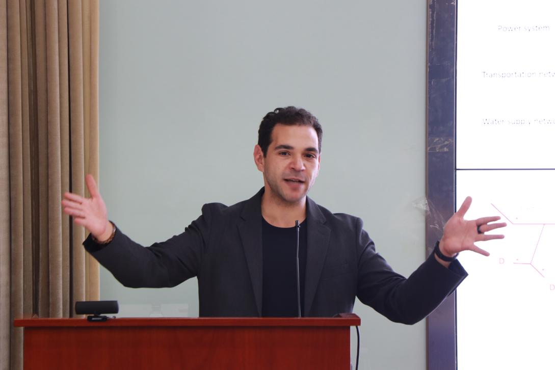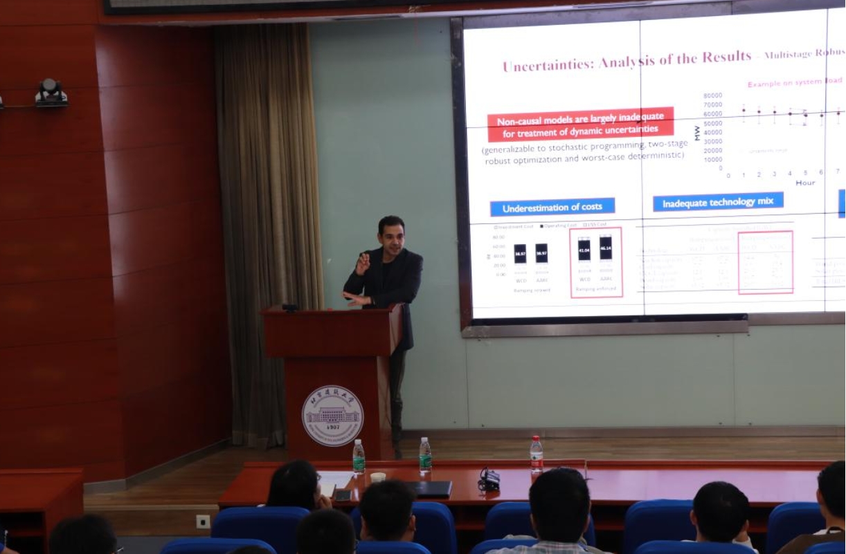 讲座伊始,邢金朵老师向我们介绍了Adam Abdin副教授,Adam教授来自法国巴黎萨克雷大学-中央理工高等电力学院-工业工程实验室。他的研究领域集中于不确定条件下大型复杂系统优化运筹研究,研究重点是结合数据分析方法、鲁棒优化技术和博弈论模型开发方法框架,以改善基础设施系统的稳健性和运营策略。目前Adam教授已发表 20 多篇学术论文,其中包括European Journal of Operational Research,Renewable and Sustainable Energy Reviews, Applied Energy等。