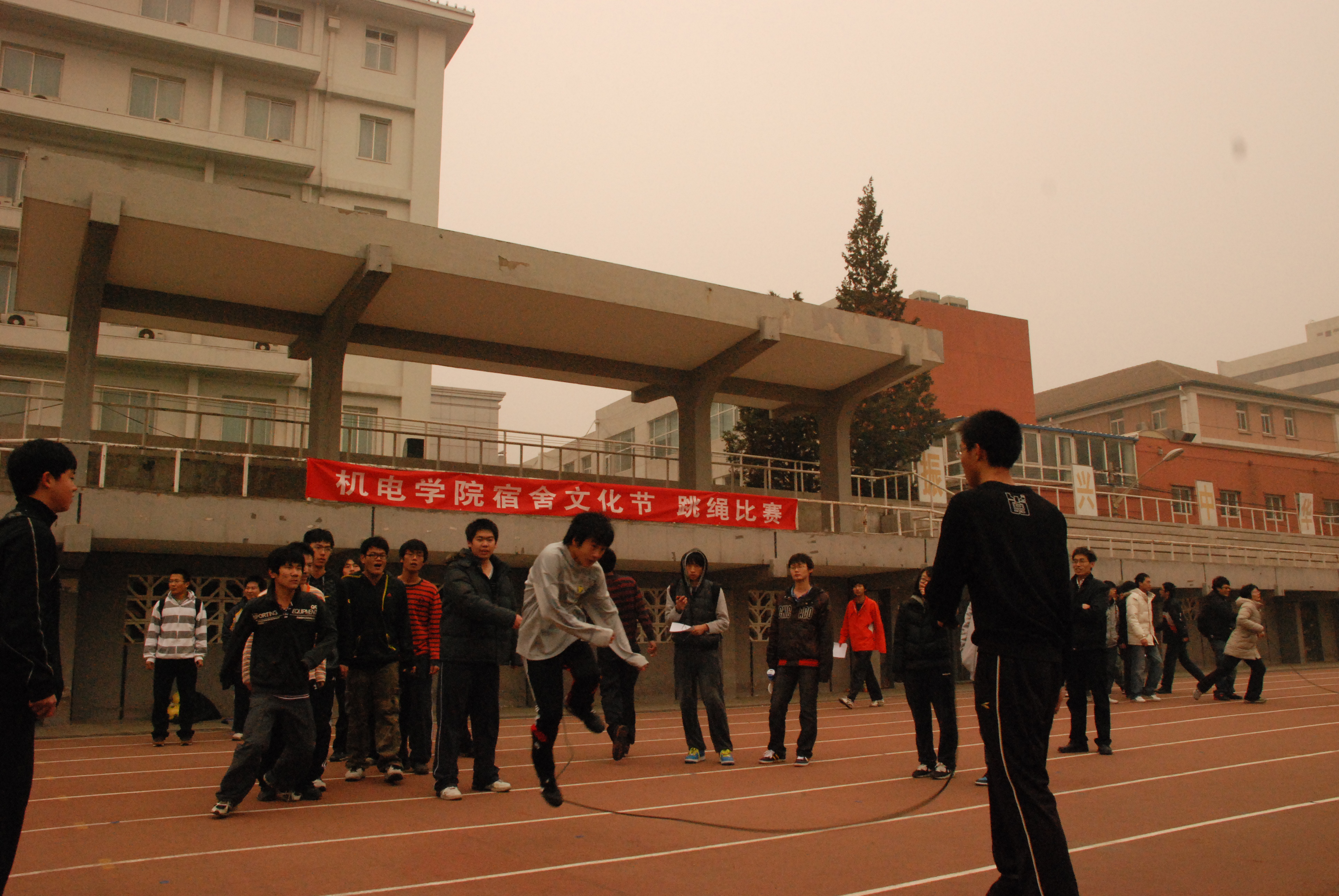 在这里举办宿舍文化节――“团结就是力量跳绳比赛”。亚色网