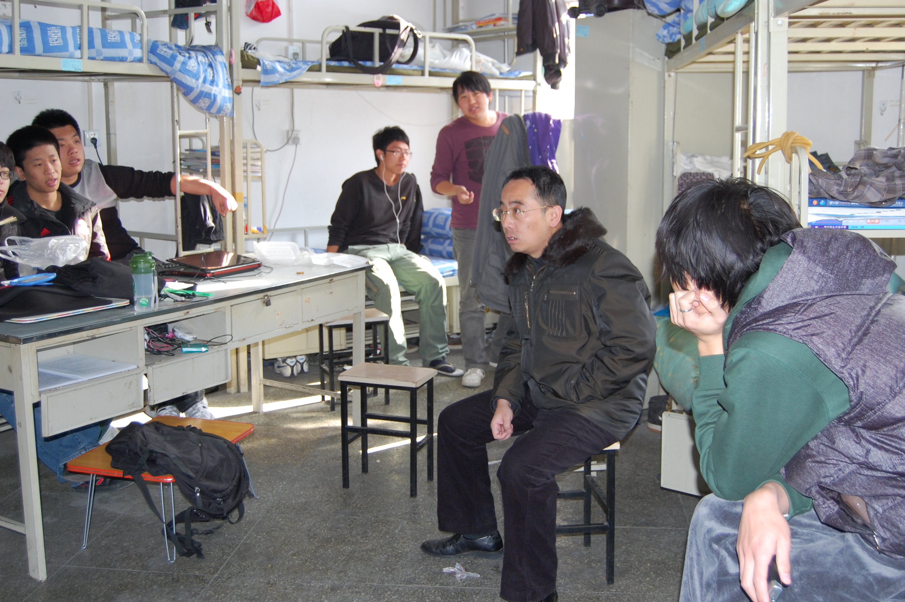2010年11月16日、22日,为了积极响应以“创先争优”为主题的党性实践活动,以加强学生专业教育和提高教师教学质量为目标,汽车工程专业党支部教师深入学生宿舍,了解学生生活、思想动态,并在宿舍举行了师生交流会。