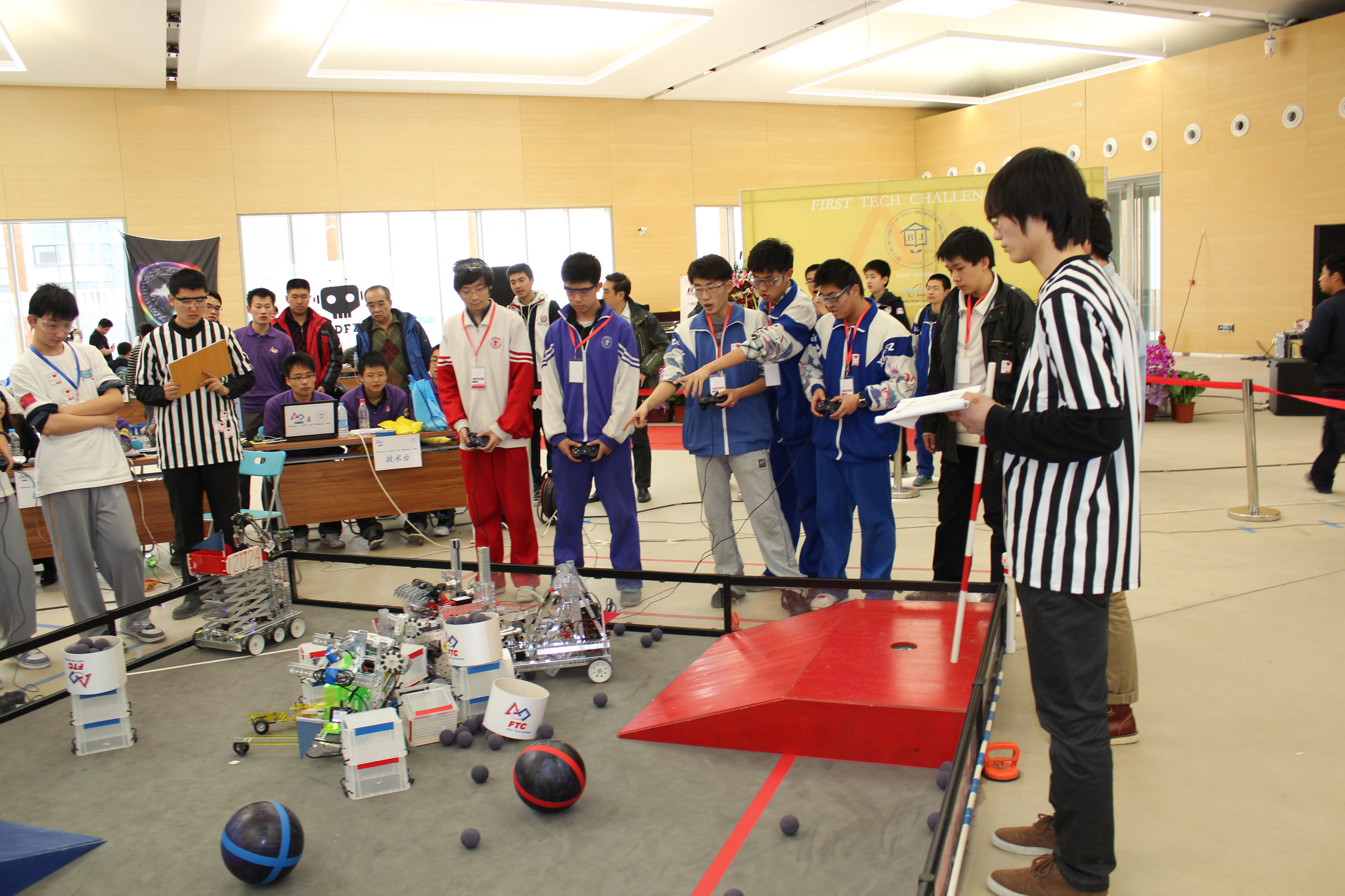 该项赛事由国际著名机器人竞赛组织FIRST在中国举办的分赛事,这也是该赛事首次正式在中国举办,赛事吸引了人大附中、景山学校、汇文中学等学校和组织的十一支代表队参赛。大赛由北京多维汇通科技有限公司赞助,美国PTC公司、西觅亚教育科技有限公司、美国国家仪器公司等诸多国际企业的大力支持。赛事的主题是“BOWLED OVER!(翻滚吧,保龄球)”,即要求参赛队伍利用给定的基础零件以及不超过规定的附属部件搭建完成检测、运球、搭建等任务的机器人设计和制作,比赛内容包括赛前答辩及赛场竞技两部分组成,其中赛前答辩阶段将考察队伍的创意构思、设计、制作和团队协作解决问题的能力等,每个小组的答辩时间为十五分钟,现场竞技则考察各支队伍完成指定任务的得分能力和效率,每轮竞技对抗的时间为两分半中,在前30秒的时间内,机器人是自动控制阶段,参赛队员只有在后面的2分钟内才能手动干预和操作机器人。与大多数的竞赛一对一对抗竞技不同的是,该比赛是两两配合对赛的形式,即不同的队伍之间既是竞争对手,又是合作伙伴,队伍之间的合作也是影响小组得分的重要因素,每场比赛之前同盟队伍的主要队员都需要紧张协商比赛策略。