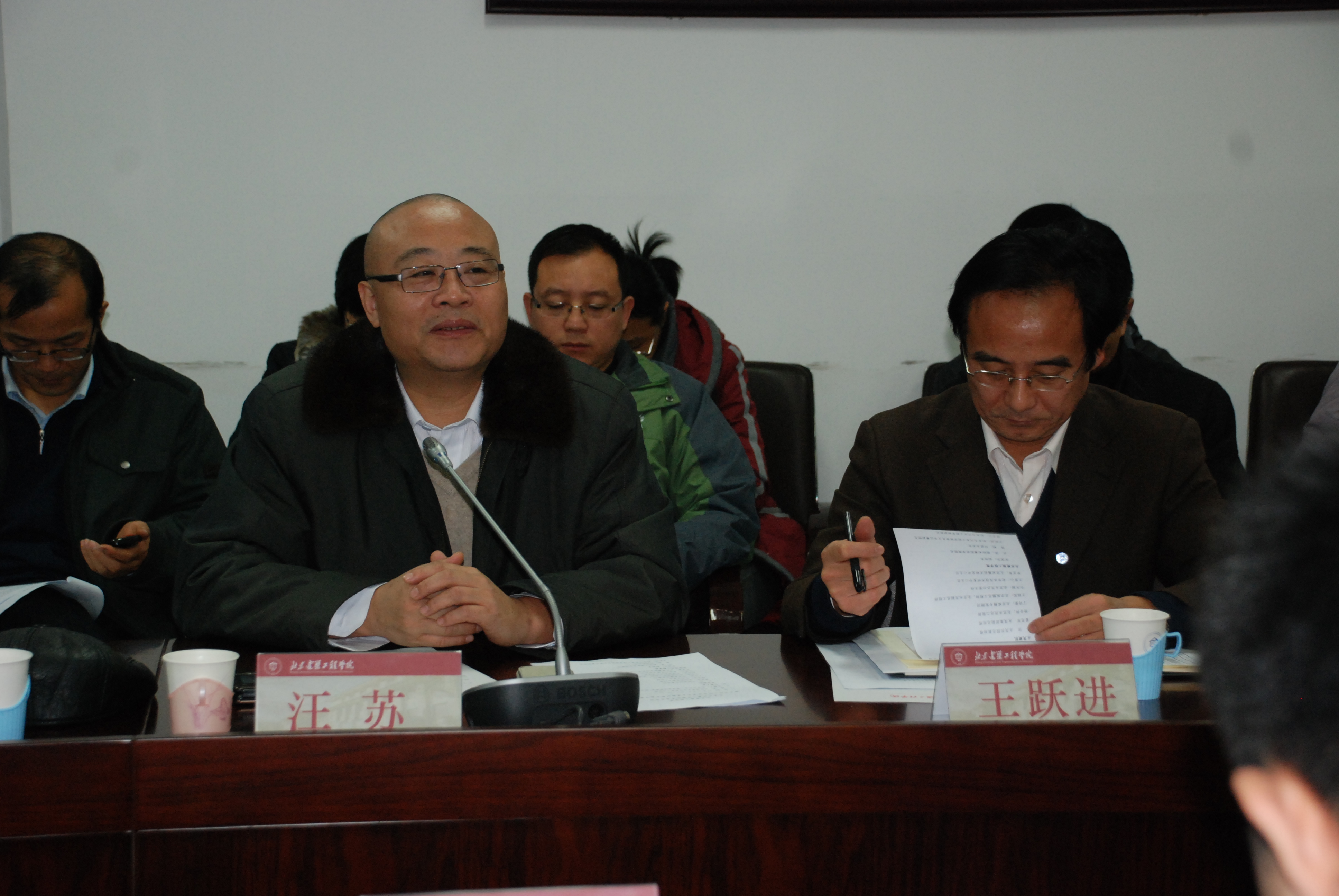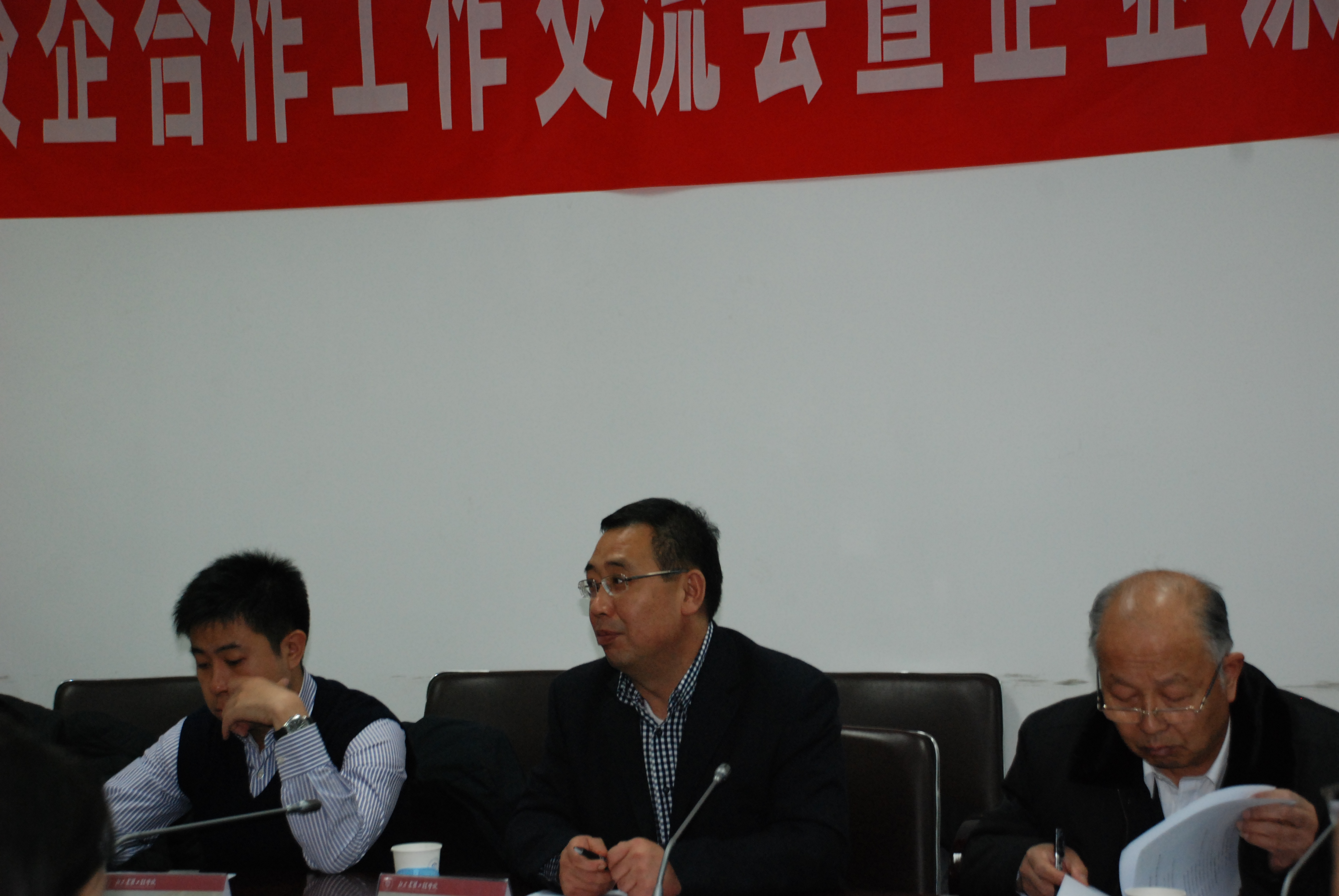 学校副校长、博士生导师汪苏教授发表了热情洋溢的讲话,对以永茂集团总裁助理为首的北京永茂建工机械制造有限公司一行莅临我校表示热烈欢迎并深刻阐述了本次校企合作的目的和意义。北京永茂建工机械制造有限公司董思军总经理发表讲话,他希望借此次会议,从深度和广度两个方面进一步推进校企合作。随后,陈宝江副院长介绍了校企合作推进情况以及校企合作过程中遇到的各种具体问题,并提出了解决的思路,如校企合作关系下企业课题如何在学校启动,教师如何获得科研业绩等等。