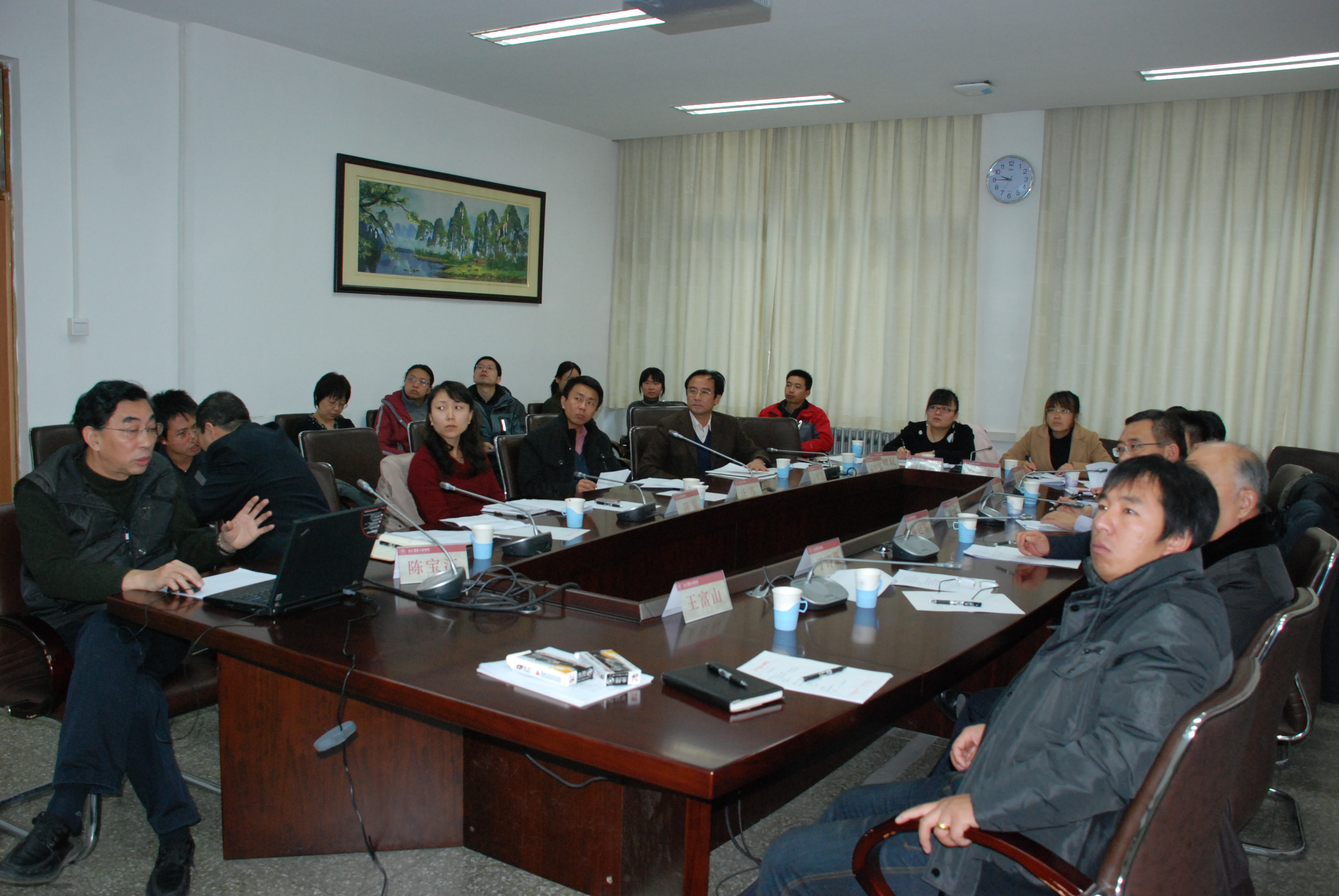 会议首先由主持人陈宝江副院长对与会人员进行了介绍,对会议主题进行了阐述。本次会议主题包括四个方面:(1)企业课题研究方案评审与研讨;(2)合作中遇到的瓶颈问题及原因分析;(3)永茂大型塔机引入校园创办技术示范与培训基地研讨;(4)永茂集团进入大学科技园事宜研讨。