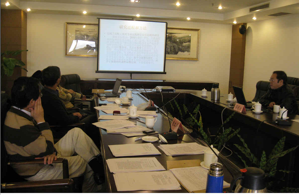 副院长陈宝江教授,作为重点课题“高校工科类专业实践教学存在问题与对策研究”主持人,参加了本次答辩会,对课题研究的进展,课题研究中存在的主要问题和下一步研究计划等向专家组做了汇报和答辩。听取汇报和答辩后,专家组出具了书面《专家建议要点》,对课题研究进展和下一步计划给予了肯定;也提出了一些建设性意见:(1)增加访谈研究方法;(2)研究现状的调查应深入些。