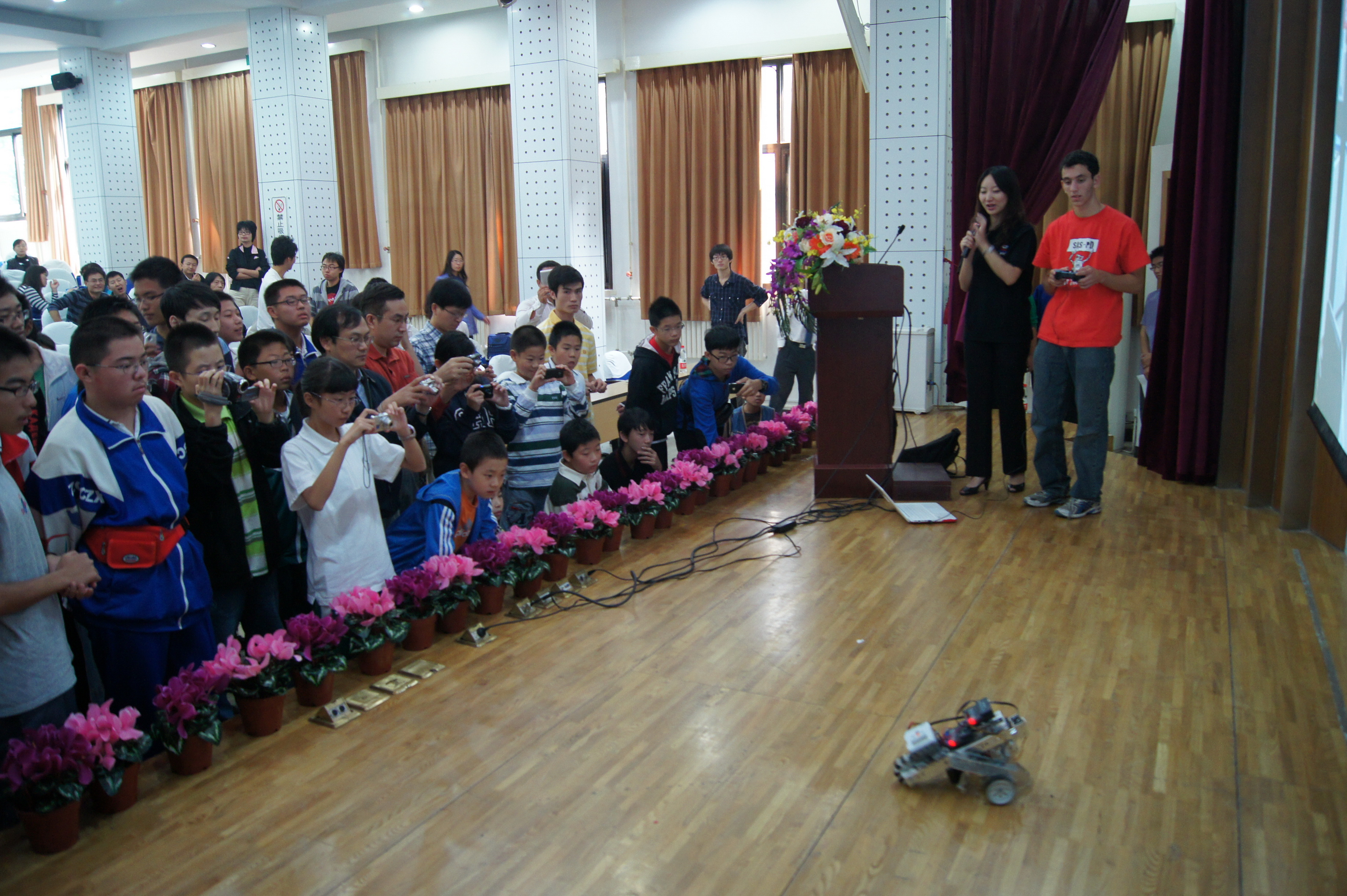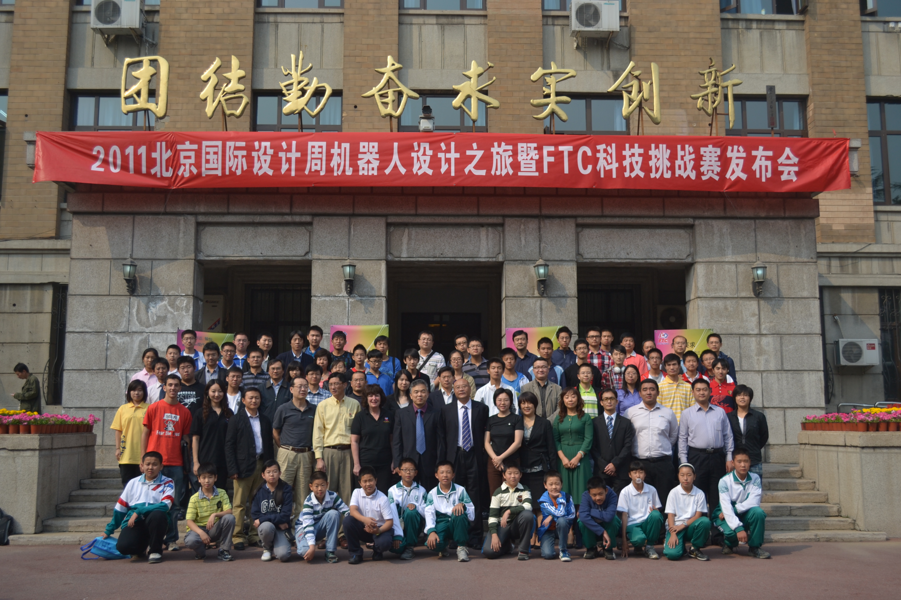 9月25日,2011北京国际设计周机器人设计之旅暨FTC科技挑战赛发布会在我校隆重举行,上午在我校第二阶梯教室举行了FTC科技挑战赛发布会,学校汪苏副校长、学校招生办李雪华主任、北京技术市场协会副秘书长丛巍教授、FIRST中国区代表Paula Joseph女士、西觅亚教育科技有限公司副总经理闫建志、卡特彼勒公司亚太区人力发展总监Jack Feng教授、研发部人事主管Lydia Chen女士、神州数码在线科技有限公司副总裁钟强先生、北京多维汇通科技有限公司副总经理郑明月先生、美国国家仪器公司高校技术市场部工程师刘洋先生、中央教育科学研究所丁振全老师以及我校校友、北京市建筑设计研究院副总建筑师储平女士等参加了发布会,参加发布会的还有来自西城科技馆、人大附中、北京四中、景山学校、北师大附属实验中学、北师大二附中、北工大附中、首师大附中、12中、八十中学、十一学校、63中学、65中学、161中学、166中学以及芳草地国际小学、东四九条小学等30多个单位的100余名师生们。