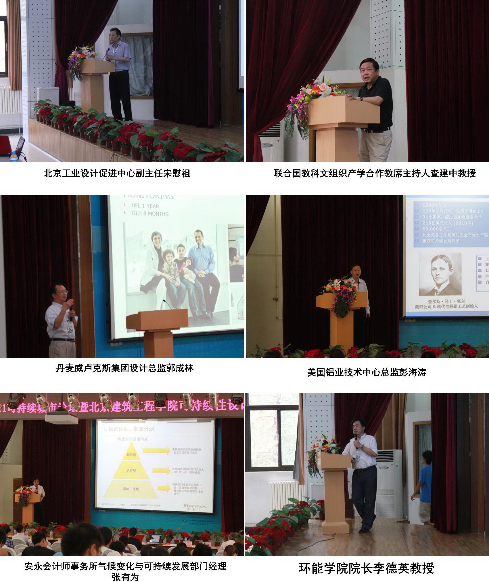 7月12日2011可持续城市论坛在第二阶梯教室开幕,北京工业设计促进会专职副理事长、北京工业设计促进中心副主任、2011北京国际设计周项目主管宋慰祖、中国可持续发展工商理事会(CBCSD)会员关系经理王烨、美铝中国技术中心总监彭海涛、威卢克斯中国有限公司设计总监郭成林、拉法基瑞安水泥有限公司中国区环境经理范晓红、美国安永会计师事务所气候变化与可持续发展部门经理张有为等出席了开幕式;我校汪苏副校长、校工会主席孙冬梅、图书馆馆长王锐英、学工办主任杨光、环能学院院长李德英、党总支书记周春、亚色网