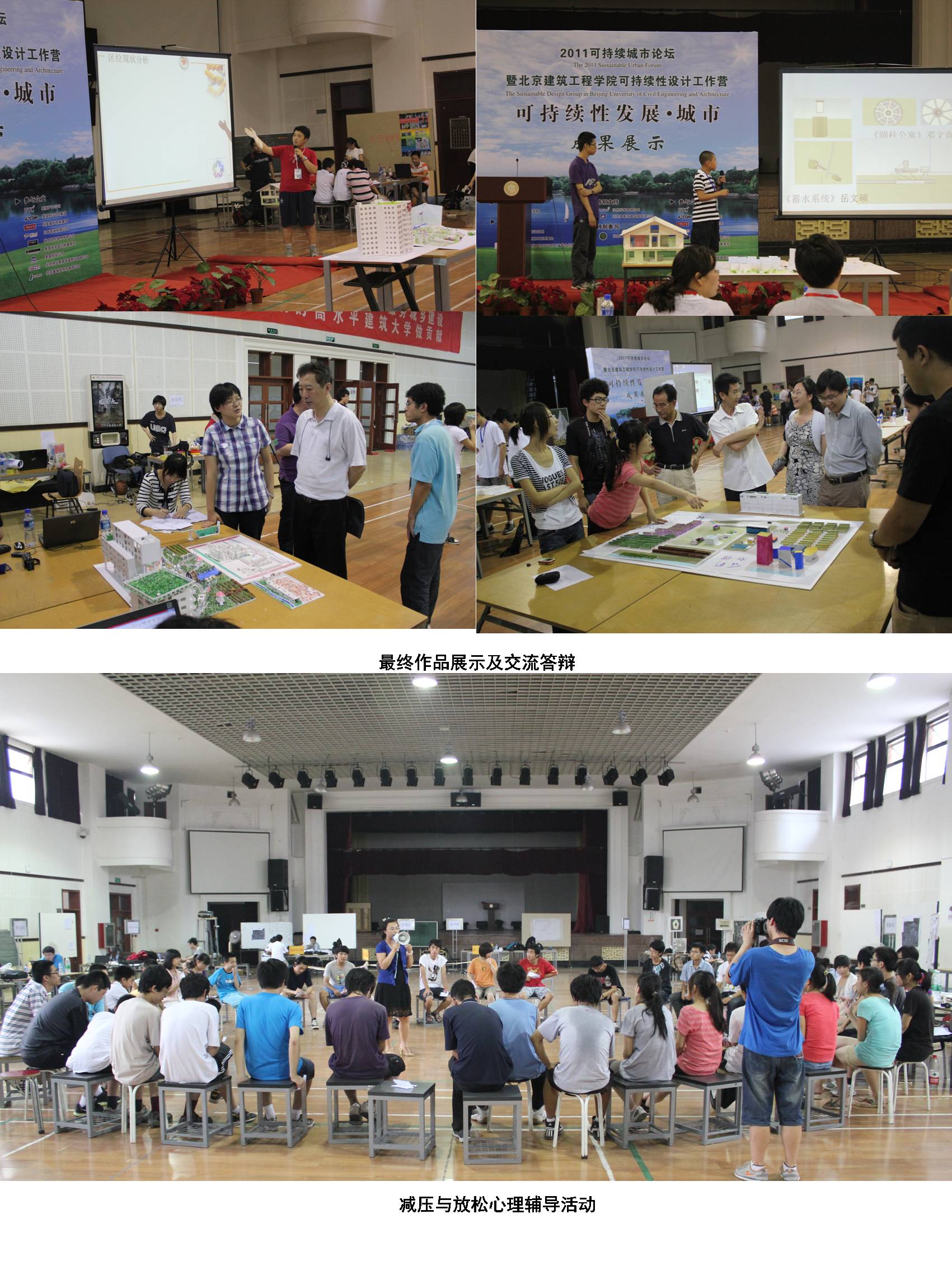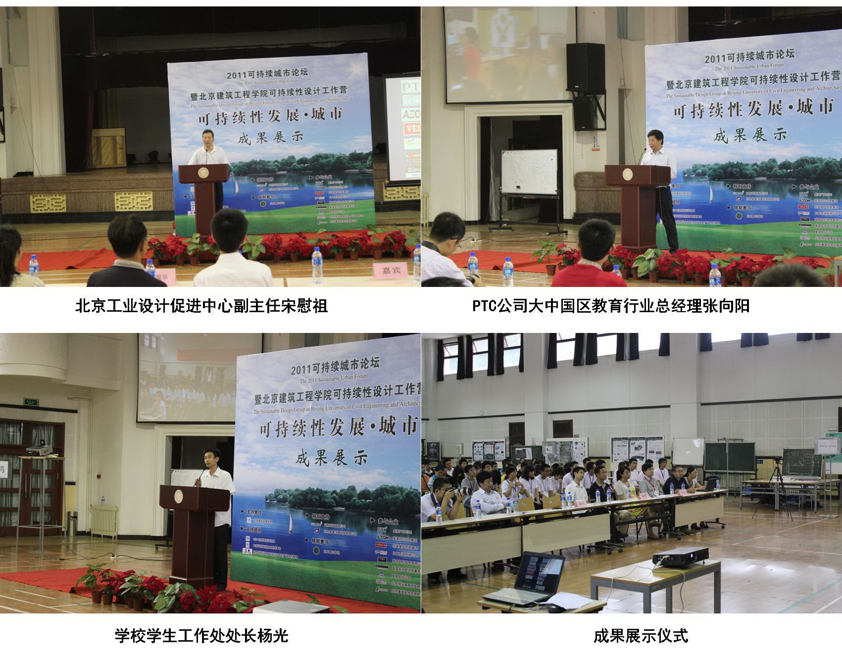 7月18日下午,2011可持续城市论坛暨北京建筑工程学院可持续性设计工作营活动成果展示会在大学生活动中心举办,在成果交流仪式上,北京工业设计促进会专职副理事长、北京工业设计促进中心副主任、2011北京国际设计周项目主管宋慰祖代表支持组织讲话,PTC公司大中国区教育行业总经理张向阳代表支持企业讲话,学校学生工作处杨光处长代表学校讲话,环能学院王思思老师代表指导教师讲话,图书馆馆长王锐英、亚色网