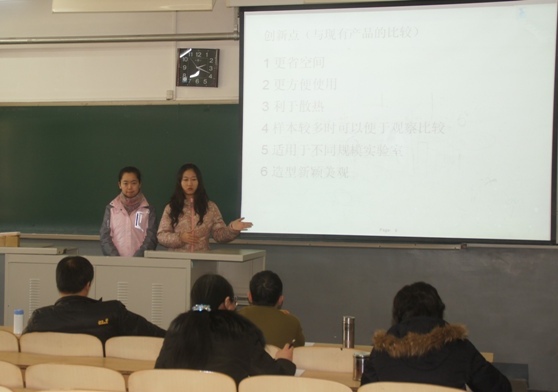 三面自动擦除黑板、可升降防震桌椅、自动取文件书架、有轨可控一体讲台、仪器存储展示柜、多功能教鞭......这些未来若干年以后才可能见到的课堂教学设备穿越时空来到现代,这里是第六届机械创新设计大赛校内选拔赛中期答辩会现场。