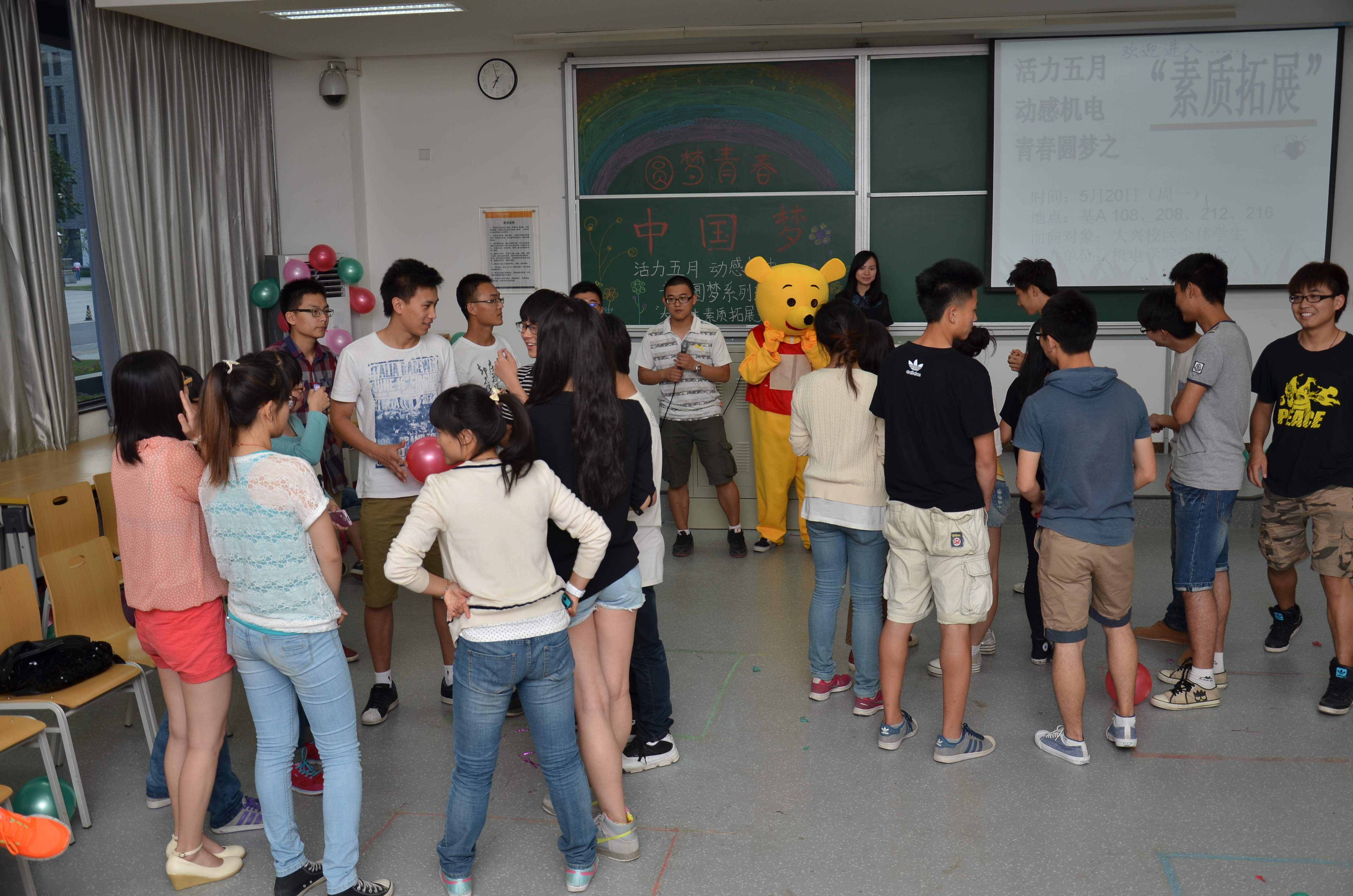在基A108、208、212、216四个教室分别开展了圆梦青春大型素质拓展活动。此次活动面向全校同学,活动项目为素质拓展训练,是一种提高心理素质,增强体能和实践的综合素质教育。以游戏为载体,在游戏中体验快乐,在互动中收获友谊,在合作中增强团队意识。亚色网