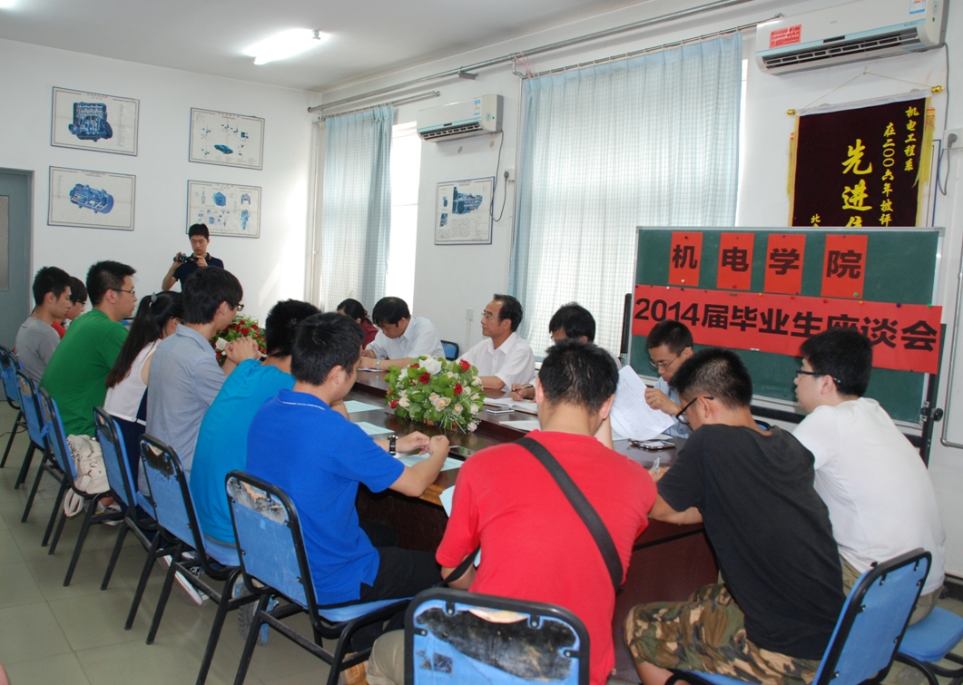召开了2014届毕业生座谈会。学院党总支书记王跃进、院长杨建伟、副院长朱爱华、党总支副书记汪长征、辅导员曾祥渭以及来自毕业班的研究生、本科生代表参加了座谈会,座谈会由党总支书记汪长征主持。