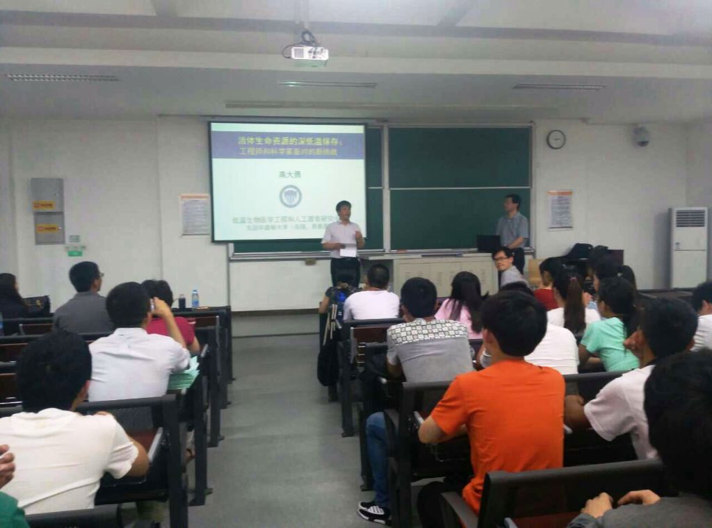 在学术讲座中,高教授以“活性生命资源的冻存”向我校师生讲述了低温保存领域当前工程师和科学家面临的新挑战。用机械专业知识制造和保存人工器官,是当前世界领先和热点话题,也是目前器官移植的最大难题之一。高教授用生动的语言和丰富的图片描述了细胞在不同降温速率的冻存过程,并详细介绍了利用电磁波进行高速均匀的降温复温以使细胞在冻存和使用中保持生机的最新研究前沿。