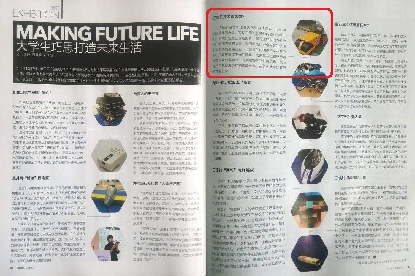 2015年第2期《大学生》杂志在创艺版刊发文章,报道了我校承办的第三届“首都大学生科技创新作品与专利成果展示推介会”,展示了推介会上大学生们巧思打造的创意作品,并隆重介绍了我校亚色网
