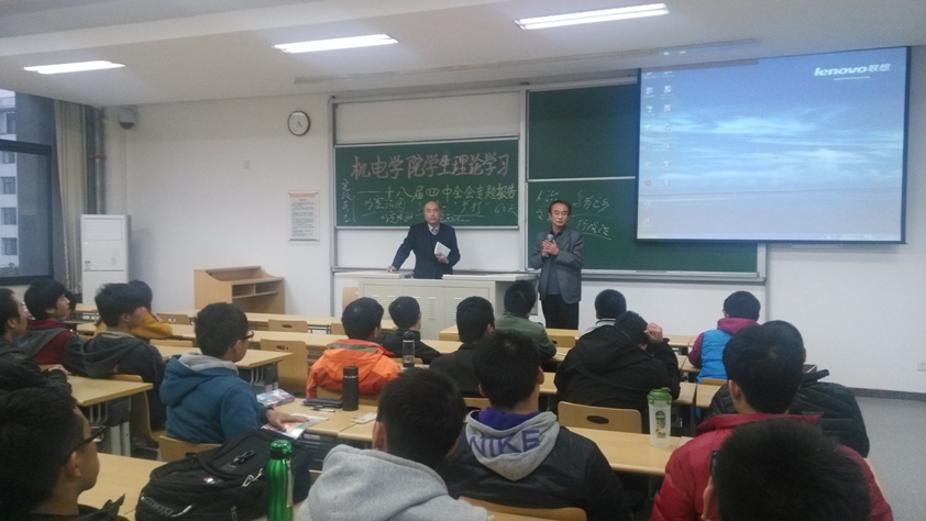 王跃进老师主持了报告会,并号召全体党员同学和入党积极分子争做全会精神的宣传者和践行者,时刻发挥“先锋”作用,影响和带动身边同学、所在的班团支部、党支部,将全会精神入脑入心,争做文明守法的大学生,做全民守法模范。