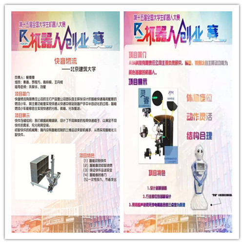 全国大学生机器人大赛下设Robocon赛事、Robomaster赛事、Robotac赛事和机器人创业大赛,其中机器人创业大赛是2016年新增的赛事。大赛下设创业实践赛和创业计划赛两个类别,自去年11月启动以来,共收到上百所高校130余件作品报名。参赛作品有着涵盖领域广泛,行业齐全,技术新颖的特点,涵盖了工业机器人,服务机器人,教育机器人,特殊领域专用机器人,空中无人机以及水陆两用机器人等,集中展现了全国大学生机器人领域的创新创业水平。