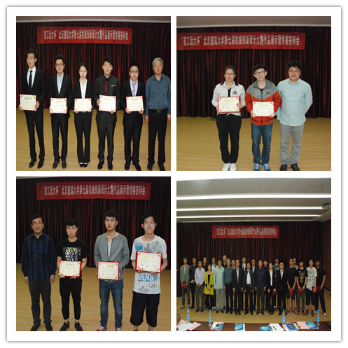 主持人向各位嘉宾与评委介绍了各组参赛作品。每一组参赛作品都凝聚着指导教师的智慧和设计者的心血,各种新颖的钱币分类装置、载运机构、包装机械以及助力设备,参赛选手展示的实物模型五花八门,目不暇接。经过两个小时的精彩答辩,共评选出一等奖1项、二等奖2项、三等奖3项、最佳创意奖1项。优秀作品将代表学校参加首都高校第八届机械创新设计大赛。
