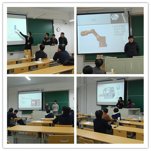 本次中期答辩是为参加第七届全国大学生机械创新设计大赛(2016年)挑选优秀作品。比赛的主题是“服务社会——高效、便利、个性化”;内容为“钱币的分类、清点、整理机械装置;不同材质、形状和尺寸商品的包装机械装置;商品载运及助力机械装置”。中期答辩的目的在于检查作品选题的可行性、作品初步构思和前期工作进展、遇到的难题和需要提供的支持等。共有16组作品参加中期答辩,参赛同学利用所掌握的专业知识、专业技能,根据比赛主题,设计开发产品,实现自己的创新梦想。参加答辩的作品有钱币整理分类装置、快递助力收取放置装置、自动包装机以及包装盒制造器等。同学们详细介绍了选题过程、同类产品的调研情况并展示了作品的初步设计以及创新点,评委老师耐心的对参赛作品进行了点评并提出指导性建议。