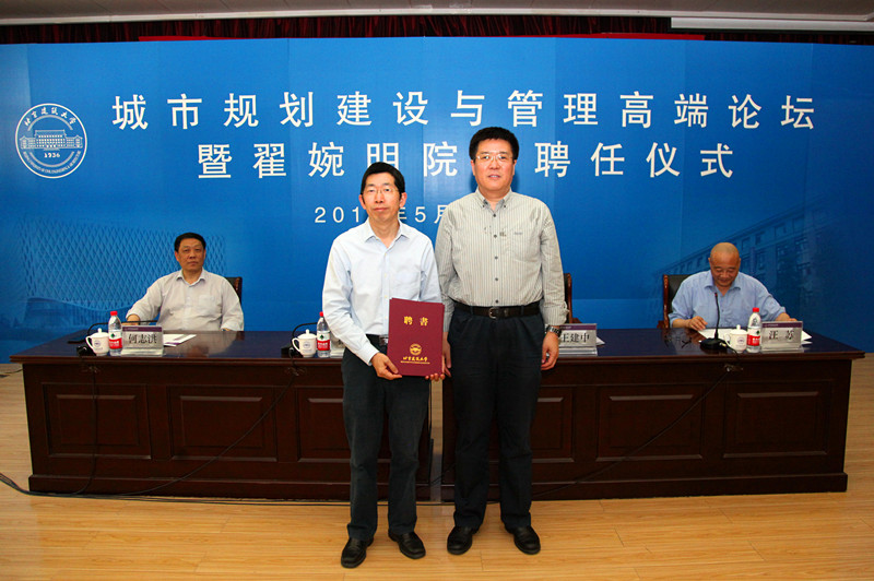 发展咨询委员会委员和北京“未来城市设计高精尖创新中心”学术委员会委员的决定》。党委书记王建中代表学校向翟婉明院士颁发了聘书。