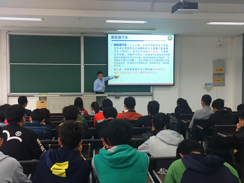 教师姚圣卓主持,学院团委书记刘星、14级-16级车辆工程专业学生及对新能源汽车感兴趣的学生参加了讲座。