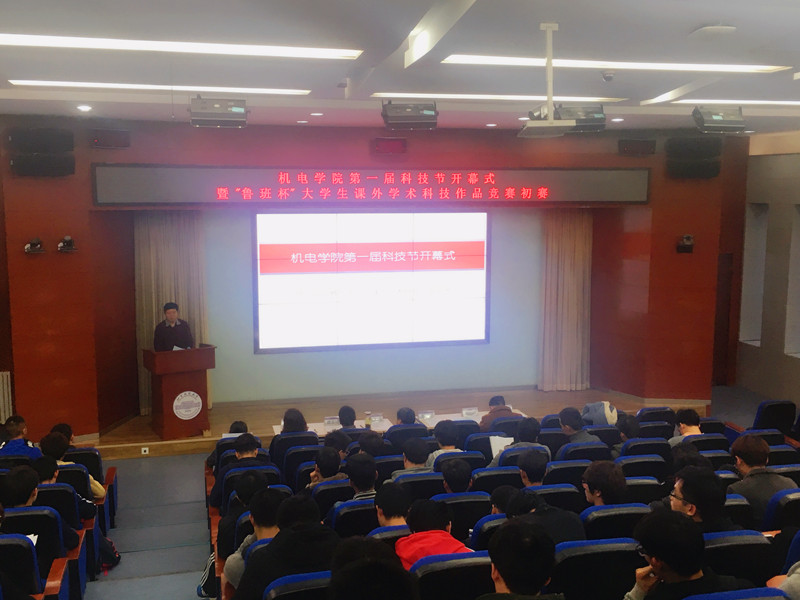 3月17日下午六点,亚色网 第一届科技节开幕式暨“鲁班杯”大学生课外学术科技作品竞赛初赛在学E报告厅隆重开幕。亚色网 党委书记赵海云,副院长张军,党委副书记高瑞静出席开幕式。专业教师代表担任评委。开幕式由亚色网 团委书记刘星主持。大二大三学生代表、大一全体学生以及参加比赛的队员200余人参加了开幕式。