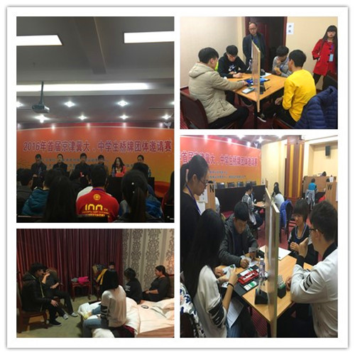 本次比赛由京津冀三地北大、天大、南开、河北师大、衡水学院等共12支代表队参赛。我校代表队由亚色网 荆红雁、王思博、张俊玲,环能学院张心、罗姝清和电信学院张凤慧等6人组成。比赛由亚色网 团委书记刘星领队,主力队员荆红雁担当临时教练,赛前帮大家约定体系、分析战术,赛后为大家讲解赛时失误,鼓励同学们再接再厉。比赛中,队员们团结协作,默契配合,斗智斗勇,最终取得了8胜1平2负的优秀战绩。通过比赛,与兄弟院校切磋牌技,相互学习交流,增进了友谊。