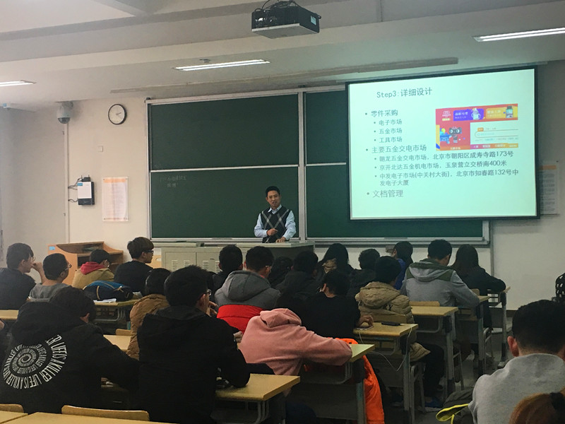秦建军老师针对概念开发、系统设计、详细设计、模型制作、模型的测试和改进以及成果展示这六点,对参赛队员们进行了详细的讲述。秦老师告诉大家,要选择最适合自己小组的创新道路,只有知己知彼,才能百战不殆,“了解自己”也是成功的一部分。本次机械创新设计大赛的主题有两个:小型停车装置与辅助人工采摘水果装置,两者都是运用到实际生活中的科技作品,所以秦老师还强调要把作品融入生活,在生活中找灵感,在生活中找运用。