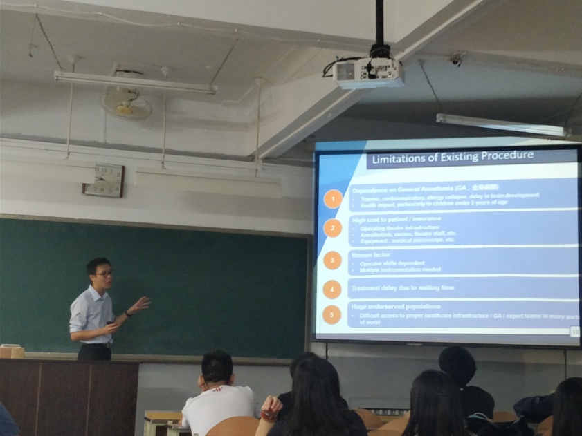此次讲座开阔了同学们的视野,使大家能了解到知识产品化、工程化的重要性,让大家了解到科研重要,但产品开发更重要、对人类更有益;也让大家了解到国际前沿的科学技术与医学领域的碰撞,并延伸到科学技术应用的各个领域之间的创新性思想,从思想上受益匪浅。