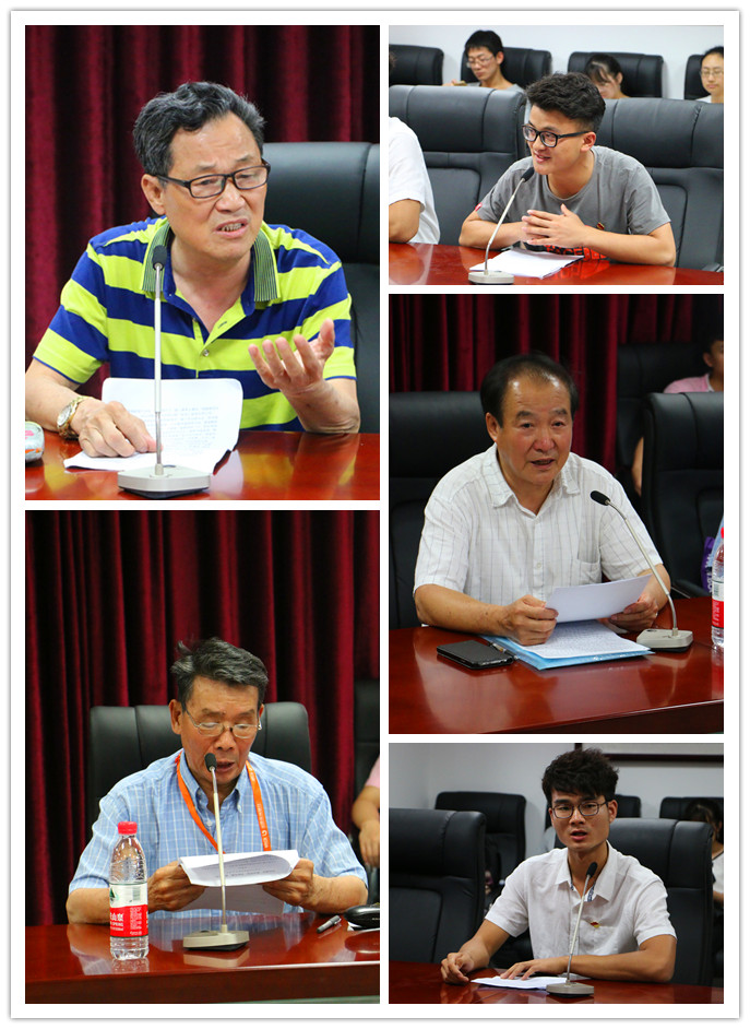 本科生第一党支部书记刘星主持。老党员周海峰从中国的外交变化说起,为国家从弱国无外交到荣升大国影响力巨大而欣慰,并送给学生们一个词“正气”,希望他们能发挥正能量。老党员史湘太从历史是面镜子、兵民是胜利之本、爱国主义教育是青年学生成长的必修课等方面回顾了历史、分析了抗战胜利的根本原因,指出了抗战精神传承的重要性。机关退休第二党支部书记吴家钰根据自己的亲身经历带领大家回忆了抗战时期的艰苦与人民的抗日精神,提醒青年们要有责任与担当。学生党员代表发言时也亮出了自身的不足,通过反思决心多做一些力所能及的事情,提升自己的思想水平,发挥党员的先锋模范作用。