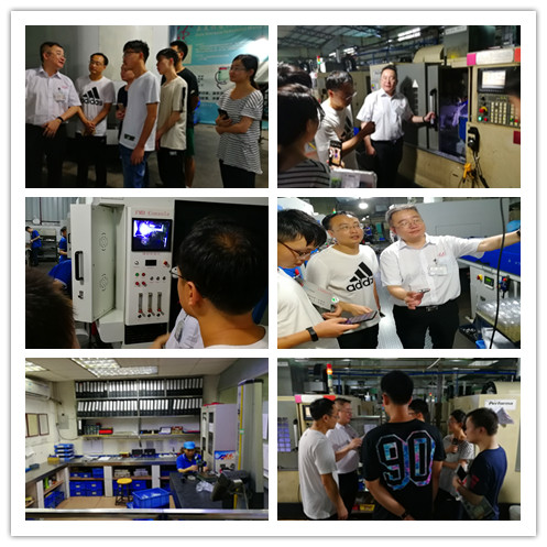 2018年7月13、14日,实践团来到位于东莞市望牛墩镇的亚美精密机械配件有限公司,副总经理冯建中带领师生一行参观企业生产工厂,介绍公司最先进的设备——五轴联动加工车床,并进行了现场演示。冯总还为同学们详细讲解了3D打印技术,通过3D打印,公司生产零件的精度能够达到0.2微米,已经是国内先进水平。质检部门被誉为企业的生命线,同学们在冯总的讲解中了解到,公司对质量检测非常重视,质检车间里所用的质检设备都是国内最好的,工作人员进出实验室也有严格的要求。企业因此获得多个国际认证。