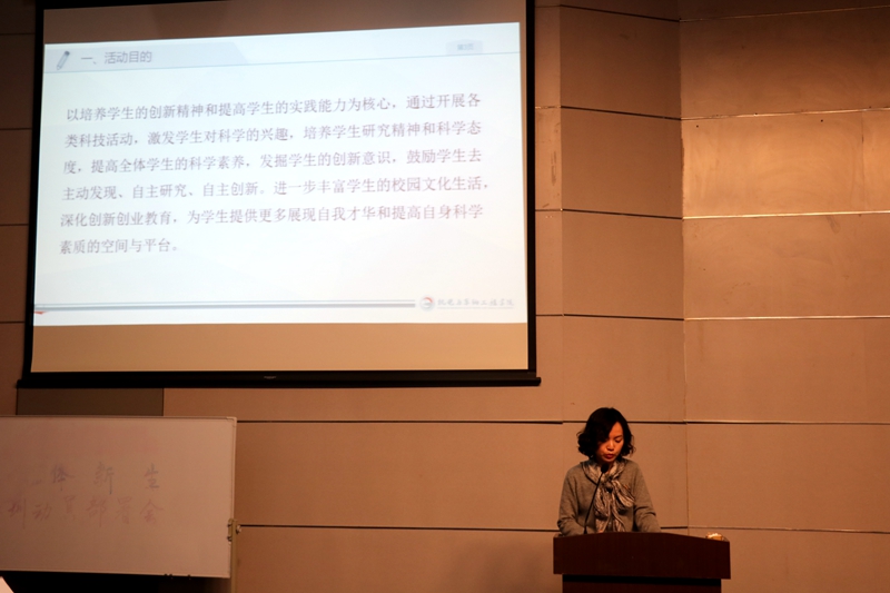 陈娟在回顾前两年科技节的基础上,介绍了今年科技节的三大版块,学院将立足多举措多方位的资源保障,进一步开拓学院师生的科创思维,为广大学子提供丰富的科创机会。