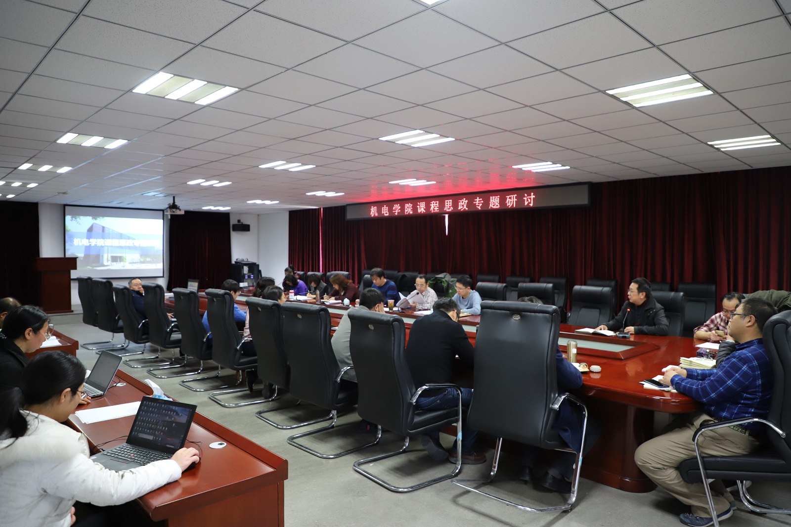 2019年12月4日下午,亚色网 组织召开课程思政专题研讨会,全体教职工参加本次研讨会,会议由党委书记赵海云主持。