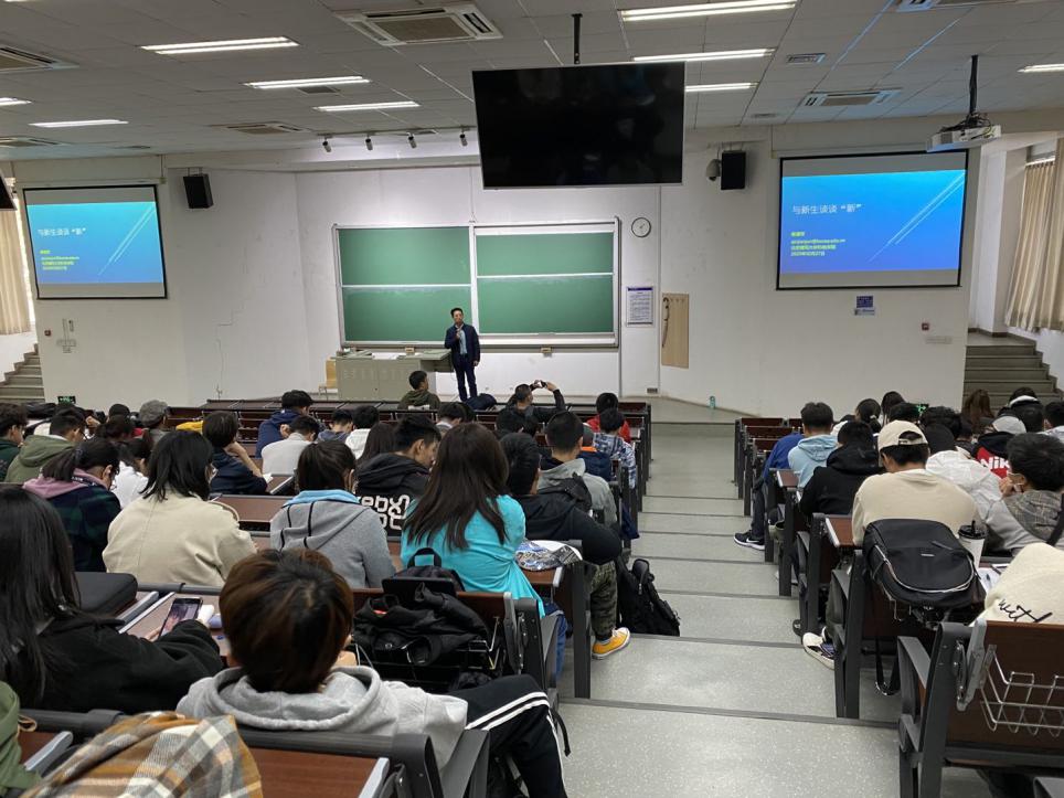 10月27日,秦建军教授为新生讲授创新思维专题讲座,以“新”为主题,从新时代、新工科、新创造、新产业以及新职业等几个方面,讲述科技创新的意义,引导学生做科技创新的主体,培养创新思想和创新能力,树立在行业领域内成为骨干的远大志向。学生会科协详细介绍专业竞赛,并邀请学生代表分享竞赛经历。