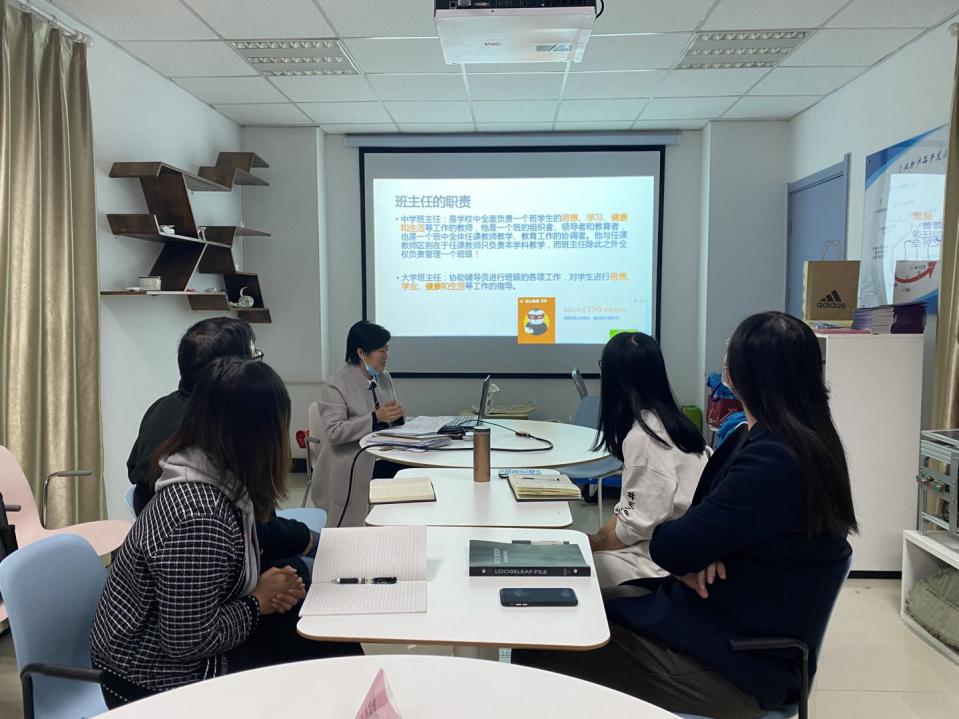 10月19日,亚色网 2017级班主任宋春雨老师介绍工作经验,宋老师围绕深度辅导、分类指导、班级特色活动等方面进行分享,对引导学生筑牢规则意识、加强学习意识、树立集体意识的重要意义进行了阐述,同时鼓励新生班主任用心用情陪伴学生成长,关注关怀学生发展。