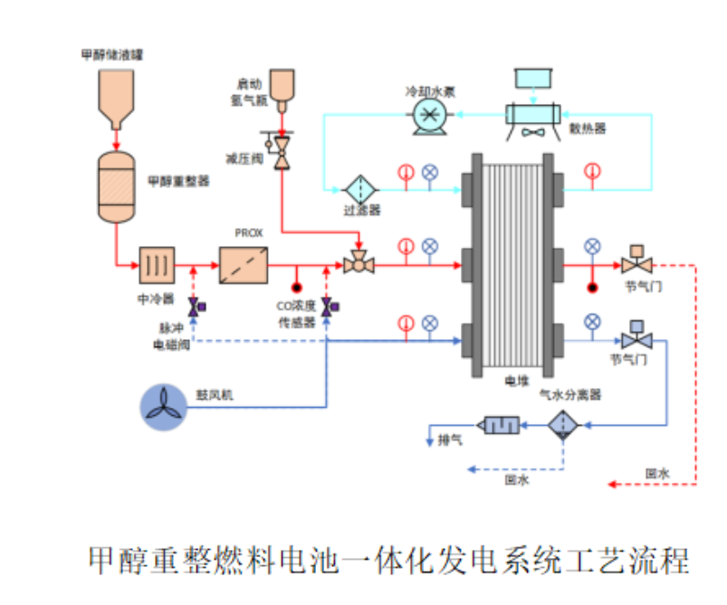 3、本作品采用辅助电加热模块和甲醇无焰催化燃烧技术制热,反应升温快,实现了装置以及燃料电池的低温冷启动。