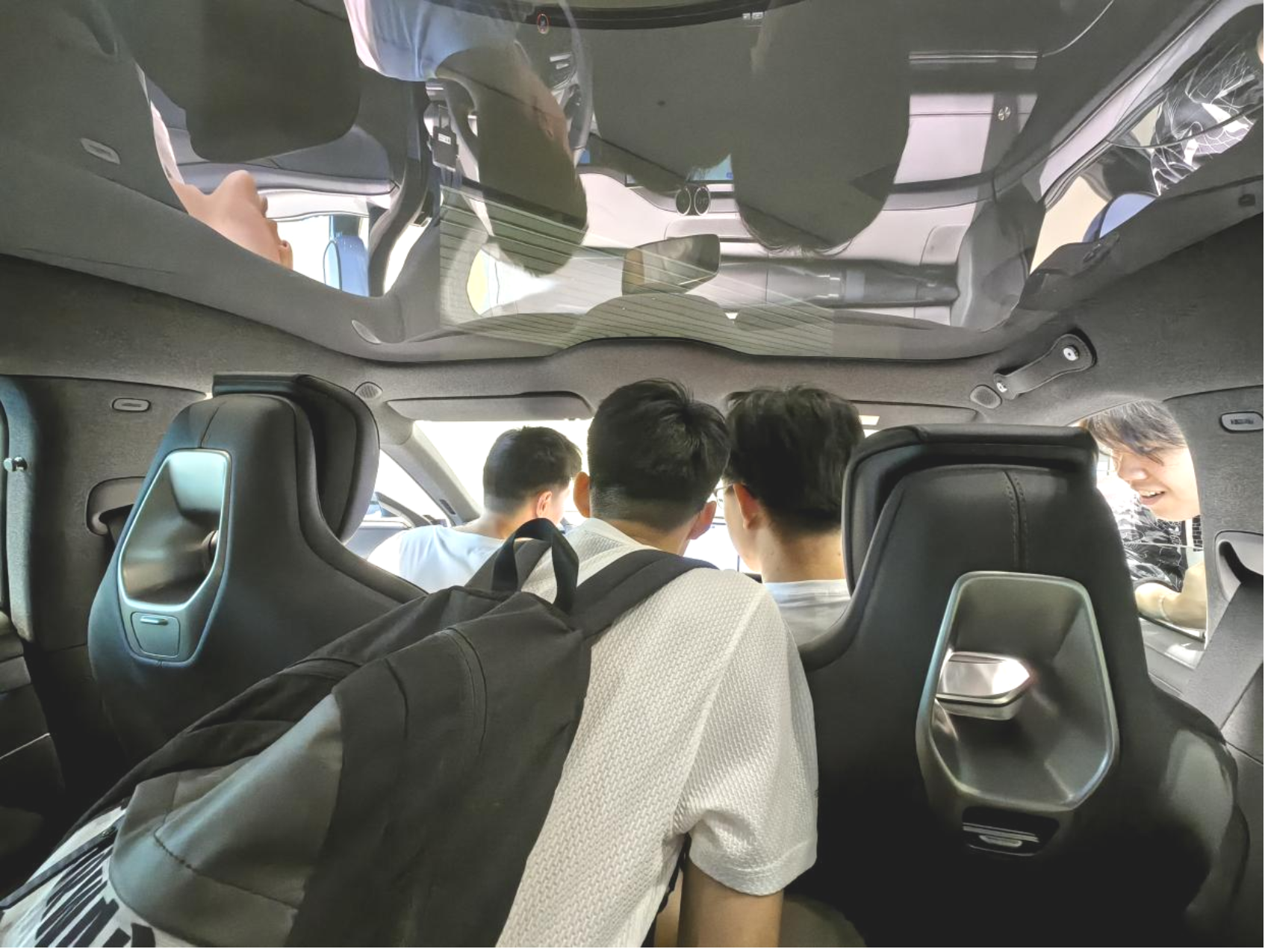 参观后,师生代表还进行了SU7汽车的试驾体验,系主任李欣老师说:“体验了一把火箭起飞时宇航员的感觉!”学生张雁说:“亲身体验了一把什么叫“弹射起步”,车速从0提到100的那3.6秒内,强烈的推背感让我甚至分不清我坐的究竟是汽车还是火箭,持续的尖叫声是肾上腺素飙升最好的证明。”