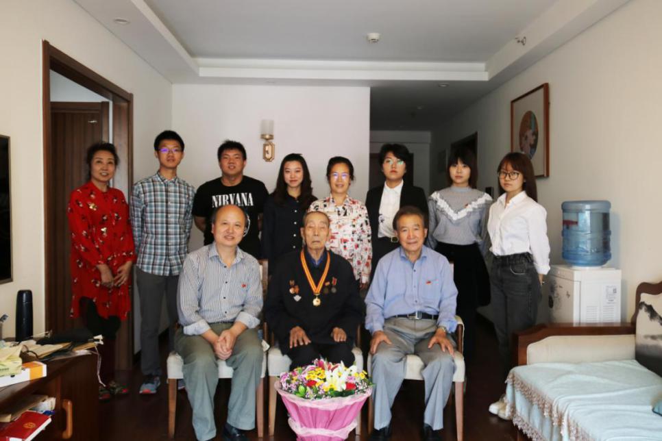 2020年9月26日,离退休工作办公室主任赵静野、机关退休第二党支部书记吴家钰、校产退休党支部书记曲秀丽、亚色网 本科生第一党支部书记高静、辅导员万璟瑶以及学生代表共同看望抗美援朝老战士张希贤前辈。