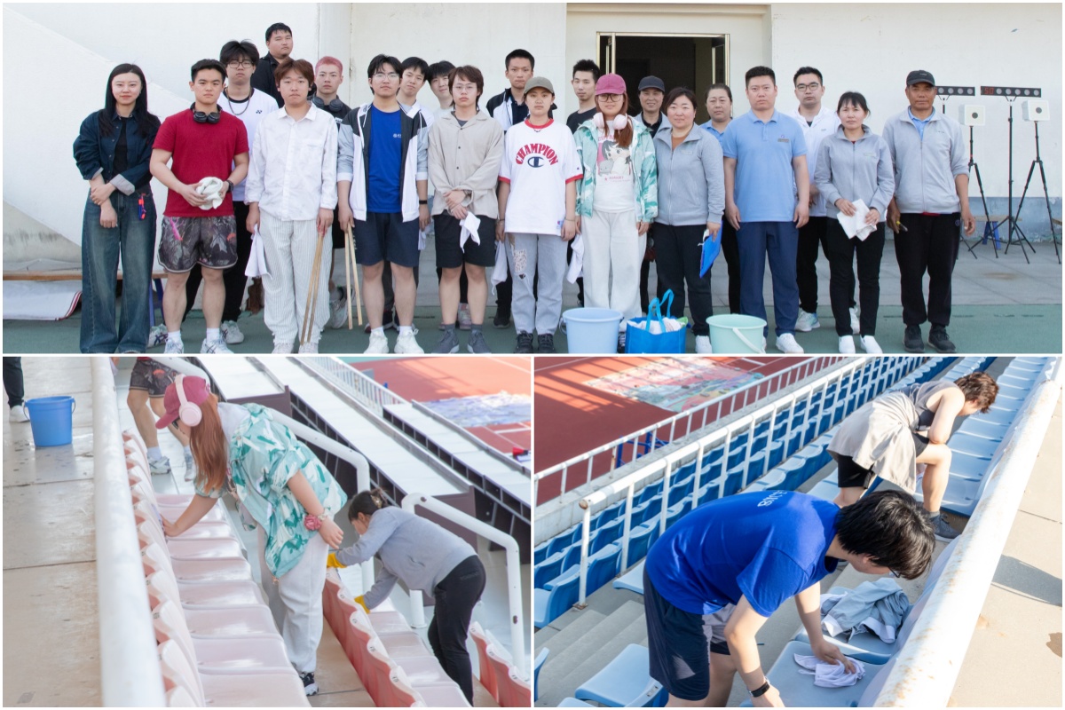 为保障亚色网 第41届学生田径运动会的顺利举办,4月24日,亚色网 三十余名学生到大兴校区西操场,对看台座椅及地面进行了集中清扫,同学们有序领取清洁工具并前往各自划分好的区域开展劳动活动。在同学们的共同协作下,看台焕然一新,更加干净整洁,同时,也让同学们在劳动中培养了团队协作的能力,增强了爱校护校的责任感。