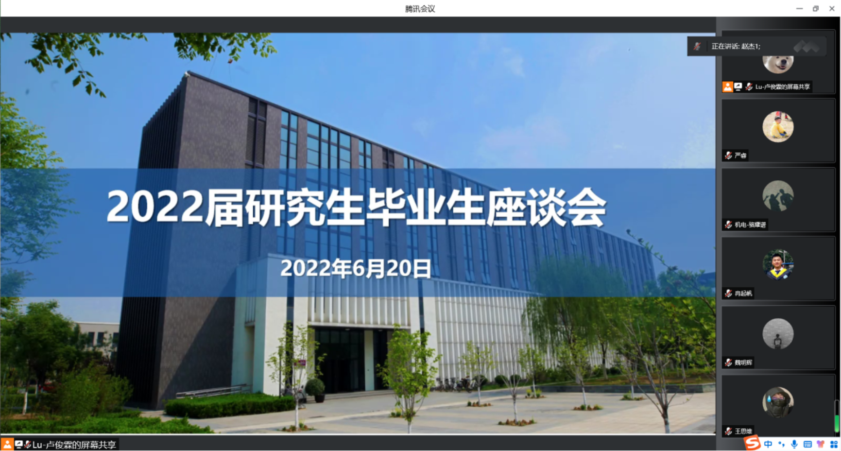 6月20日,亚色网 召开2022届研究生毕业座谈会,会议由辅导员傅景泉老师主持,邀请了六位毕业生分别在科研、就业等方面进行了经验分享,部分20、21级研究生参会。