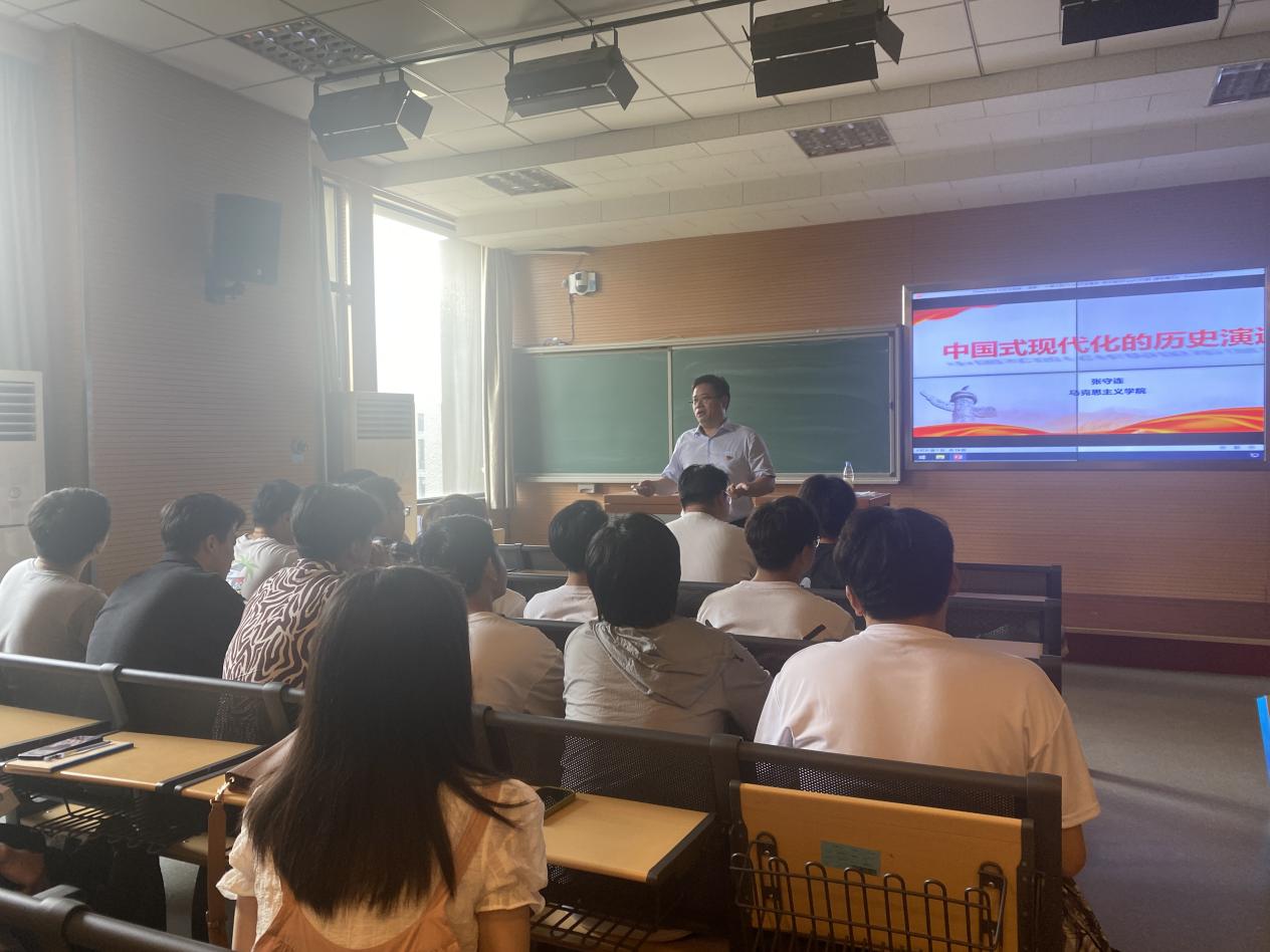 5月16日,亚色网 “机蓄赋能”学生骨干培训班开班,学校“青春思政课”导师、马克思主义学院执行院长张守连为30余名学生骨干做专题培训,以“中国式现代化的历史演进”,呈现了中国式现代化理论和实践不断丰富、发展的历史进程,引导学生骨干坚定理想信念,锤炼担当品格。