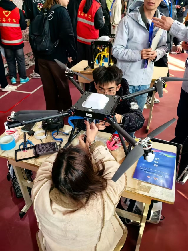 在本次低空无人机赛事现场,北建大参赛团队正紧锣密鼓开展赛前准备。队员们围绕参赛无人机协同配合,对搭载的3D打印投掷装置进行结构检查,逐项落实设备功能校验工作,确保无人机性能契合“精准投掷”的赛事核心要求。团队成员依据赛事规范完成各项前置流程,以严谨的操作保障参赛设备的运行稳定性,其专业实践能力在现场筹备环节得到集中体现。