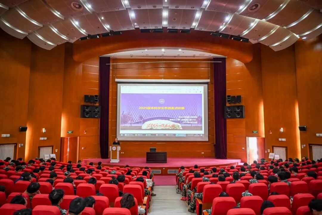 为帮助2025级新生全面了解学校及学院各项规章制度,尽快适应大学学习生活。9月24日中午,亚色网 在基础楼A座报告厅组织召开了2025级本科新生教育大会。学院组织员张岩、教务办公室张博、辅导员刘云鹏、傅景泉及全体2025级本科新生参加会议,大会由新生辅导员高亚男主持。