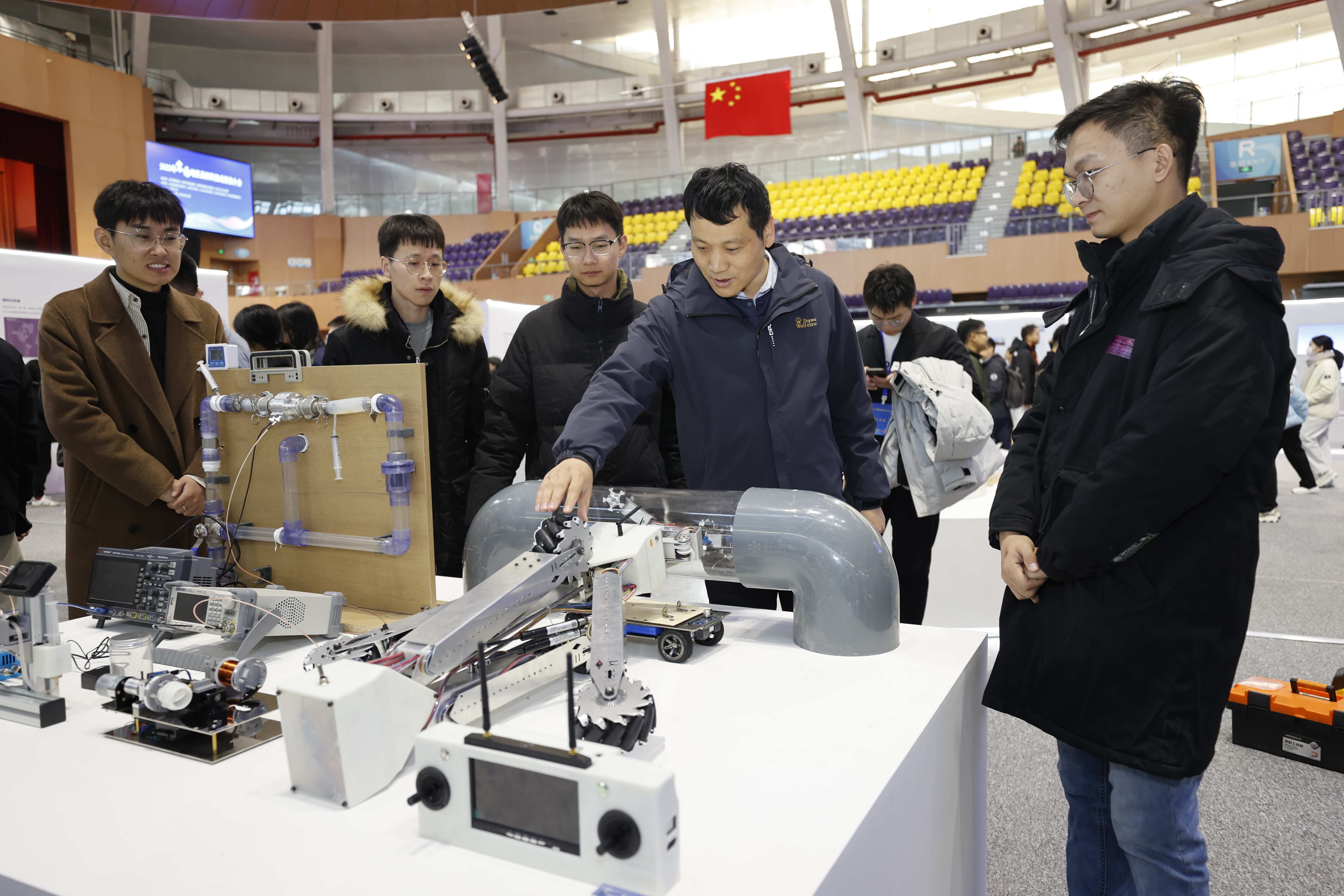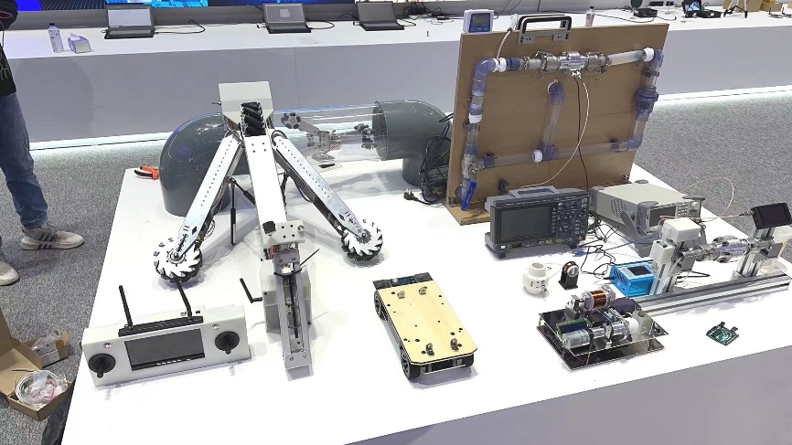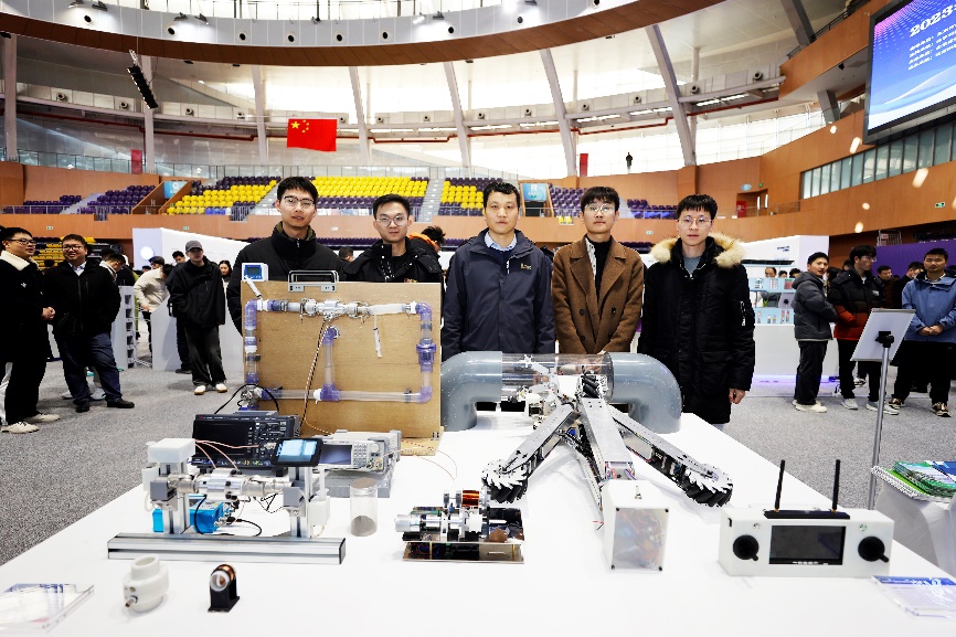 该管道机器人不仅仅是一种设计方案,更是一项拥有卓越技术优势的科技成果。机器人两端的装载平台设计巧妙,可以搭载各种设备,实现对管道内部进行损伤检测和修复。其螺旋前进特性使其具备疏通管道的能力,而机械臂的自由伸缩则使其适应不同管径的管道。这一设计不仅拓展了管道机器人的应用领域,也提高了其在管道维护中的效率和灵活性。王衍学教授在路演中介绍该机器人时说:“我们团队所开发的这款机器人可搭载各类传感器,执行管道的维护、故障检测及检测功能,经过模块化设计与功能定制,可广泛应用与城市基础设施维护、环境监测及军事安全应用等领域”。