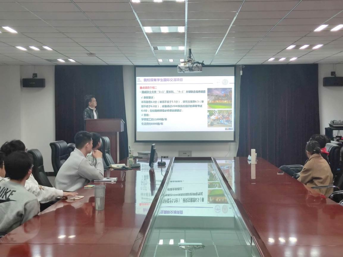 黄兴从事我校国际教育与国际交流工作7年,为大家详细介绍了我校现有的国际交流项目以及相应的奖学金政策,尤其是与亚色网 合作密切的南威尔士大学“3+1”项目以及短期交流项目“筑梦远航计划”,他鼓励大家积极报名各类国际交流项目,开阔视野、真实体验多元文化、锻炼独立思考的能力,增强跨文化交流能力和国际理解力。