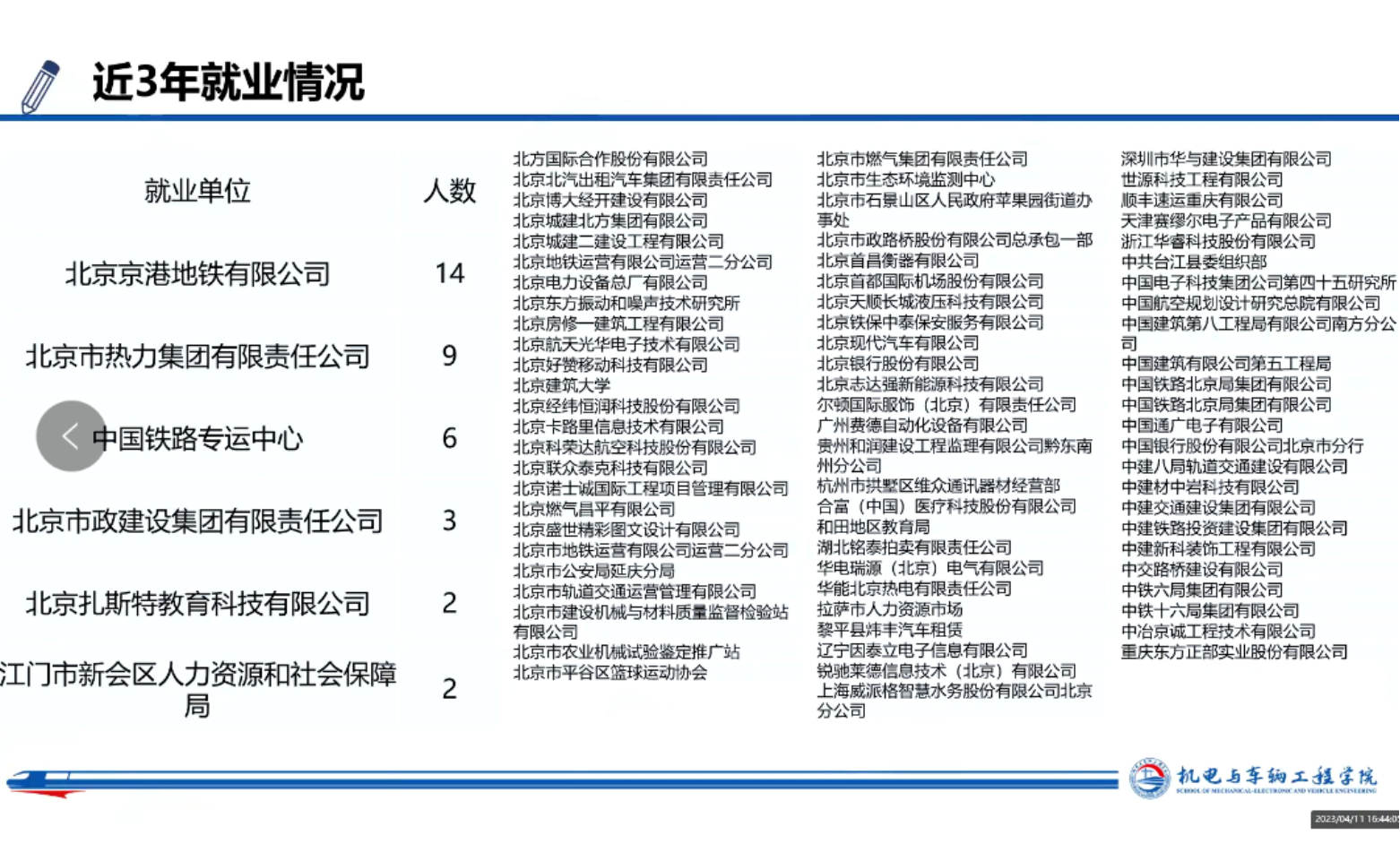 傅景泉以大数据视角总结了近三年车辆工程专业毕业生的就业情况和升学情况,为同学们提供了宏观的专业发展前景认知。