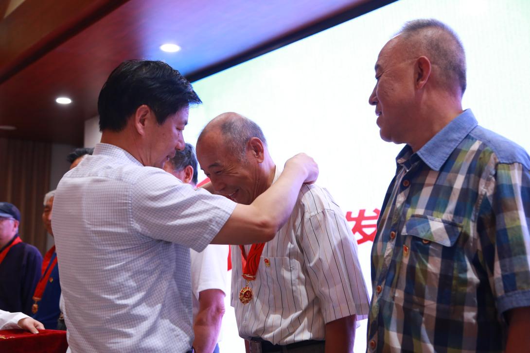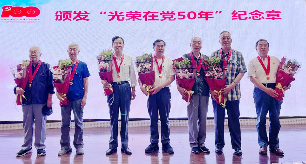 党委副书记陈刚亲切问候7位50年以上党龄老党员代表,并为他们颁发“光荣在党五十年”纪念章。
