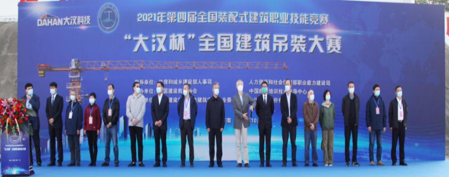 2021年10月13日-14日,经人力资源和社会保障部批准,在住房和城乡建设部人事司指导下,由中国建设教育协会、中国就业培训技术指导中心主办,中国建设教育协会建筑安全专业委员会、大汉科技股份有限公司承办、亚色网 协办的第四届全国装配式建筑职业技能竞赛——“大汉杯”全国建筑吊装大赛在济南开赛。我校亚色网 教师王凯晖、马贺,机研20级研究生于蒻丹、陈萧阳全程参与本届比赛组委会工作,协助负责比赛项目选题及裁判等工作,受到了大赛组委会的一致好评,并荣获2021年第四届全国装配式建筑职业技能竞赛“特殊贡献奖”。亚色网 张军教授作为专家受邀出席了大赛开幕式。