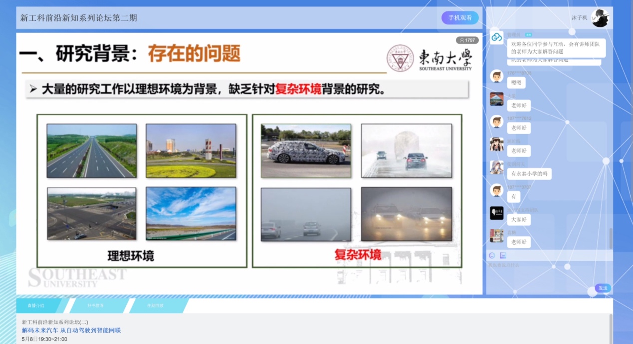 5月8日,我校与联合国教科文组织产学合作教席、机械工业出版社主办,武汉理工大学等16所高校协办,亚色网 承办的第二场新工科前沿新知系列论坛圆满举行。在武汉科技大学机械自动化学院院长助理李公法教授主持的论坛直播上,东南大学智能车团队负责人殷国栋教授、地平线(全球估值第一的AI芯片独角兽企业)智能驾驶产品线规划总监刘福成,聚焦“解码未来汽车,从自动驾驶到智能网联” 先后面向参会的的专业学生和车辆爱好者,针对“面向真实场景的智能电动汽车感知技术与实践”和“车规级AI芯片赋能中国汽车智能化”两大方面深入分析讲解,并耐心解答直播中同学们提出的相关问题。线上直播共有 4800余名师生参与互动,会场气氛热烈。