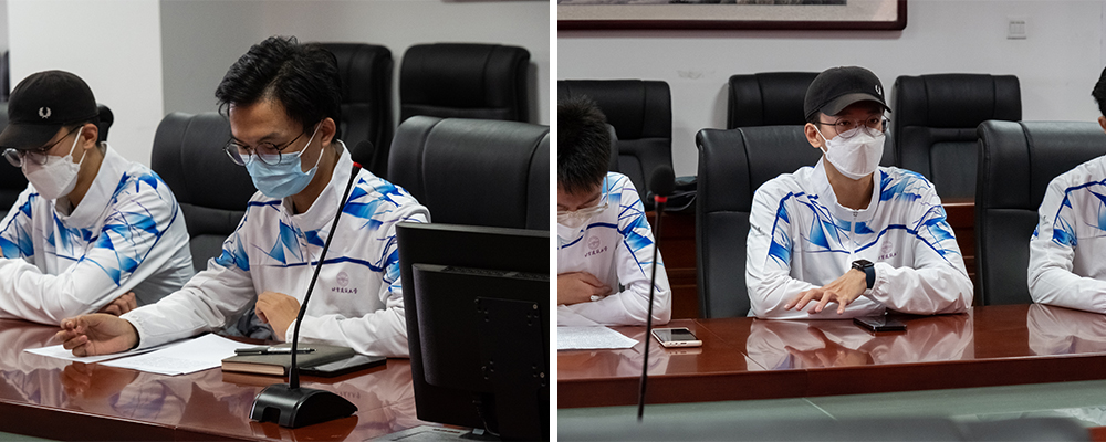 4名测试赛志愿者汇报前期服务工作情况,并围绕工作期间的心得体会、感受感悟进行分享。志愿队伍中唯一的博士生李孟从服务防疫、英语交流等方面向志愿者们分享了实用建议;机械182班黄兴梳理了测试赛整体服务过程,并就其中需要注意的关键点进行了提示;城轨181班苏宁讲述了自己亲眼见证赛场上国旗升起时无比自豪心情,疲惫也一扫而空,他提到:“冬奥就是用几个月的时间,完成一件一辈子也不会忘记的事情”;机电191班沈华帅为当前国内疫情防控取得的进展感到骄傲,他说:“参加冬奥志愿工作的经历是非常宝贵的阅历,可能永远都不会忘记。”