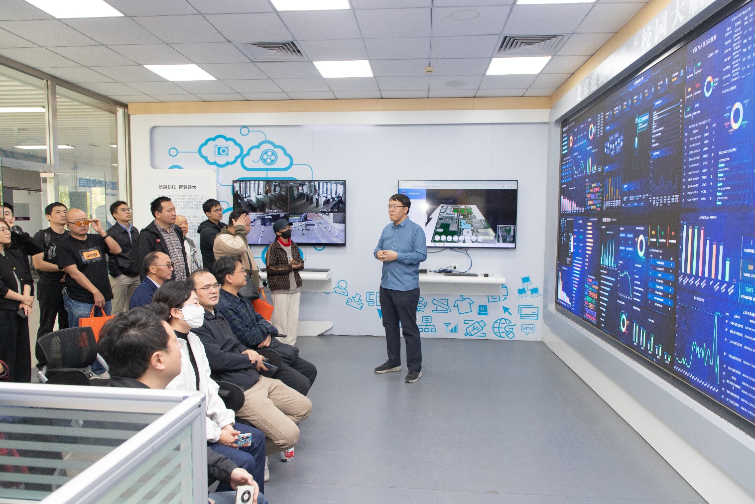 会后,西城区中小学信息中心主任、部门负责人一行参观学校智慧校园建设情况、大型多功能振动台阵实验室和图书馆等。